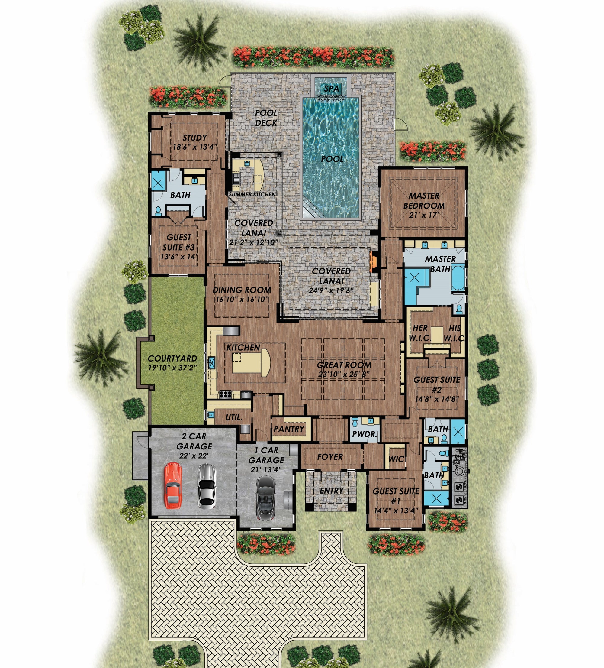 This 4,467 sq. ft. single-story luxury home blends timeless elegance with modern design, offering a seamless open floor plan perfect for family living and entertaining. The heart of the home is a spacious great room with soaring vaulted ceilings, connecting effortlessly to the gourmet kitchen with a large eating bar, walk-in pantry, and convenient butler’s pantry. The layout also includes a formal dining area and a dedicated home office or study, providing flexibility for today’s lifestyle. The first-floor master suite is a private retreat featuring a spa-like bathroom and expansive walk-in closets for ultimate comfort.