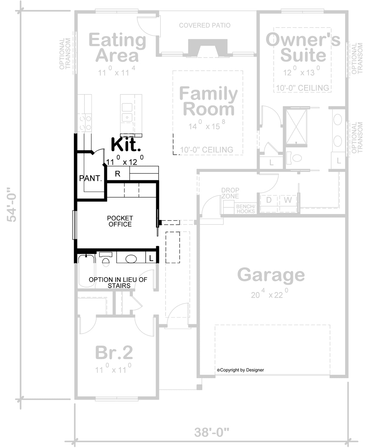 The split-bedroom layout offers ultimate privacy, with the master suite boasting a generous walk-in closet and direct access to laundry. A second bedroom and an adjacent full bath are perfect for guests or family members. The home also features a dedicated home office/study, making it ideal for remote work or creative pursuits. With an unfinished basement for extra storage or future expansion, this home combines comfort, practicality, and a touch of sophistication in a charming 38' x 54' footprint.
