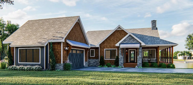 This rustic, craftsman style lake house has everything you need to get the most out of the lake living lifestyle. The charming exterior textures of stone and shake siding give this home great curb appeal. Once you step inside the home, you will be blown away by the large great room that lies under a cathedral ceiling with exposed wood beams. Adjacent to the great room you will find the kitchen and dining area. The kitchen includes a walk-in pantry and a kitchen island with a snack bar. The master suite includes a large master bath with his/her vanities, a soaking tub, and a walk-in closet. There is also an ensuite on the main level with its own access to the shared hall bath.