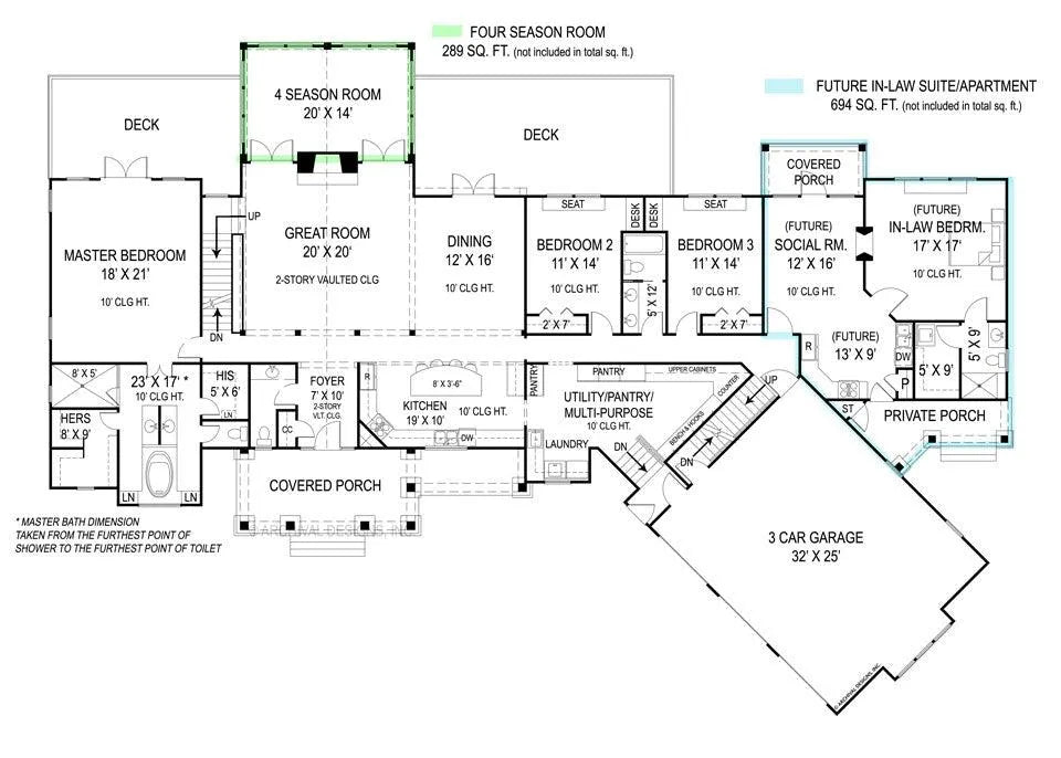 The Pepperwood ranch home plan has an amazing open floor layout made to entertain guest and house a retired parent or two in its in-law suite and bonus areas. This rustic ranch cottage house plan is ideal for multi-generational house holds featuring 3 bedrooms, an in-law apartment, and expandable second floor.