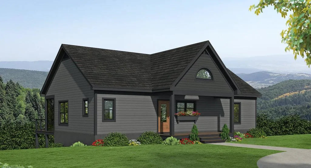 This charming family home plan offers a total living area of 1,273 sq ft on the first floor, complemented by an equal-sized basement. Featuring three inviting bedrooms and two well-designed bathrooms, it provides ample space for family living. The home boasts a spacious deck of 368 sq ft, perfect for entertaining and enjoying the outdoors. A welcoming front porch of 106 sq ft adds to the home's curb appeal, while an additional side porch of 83 sq ft offers extra outdoor space. With a total porch area of 557 sq ft, there’s plenty of room for relaxation and gatherings. Built on a sturdy slab foundation, the house features 2x6 wall framing for enhanced durability. The building stands at a height of 19'-1'', with a ceiling height of 9' on both the first floor and basement, creating an open and airy atmosphere throughout.