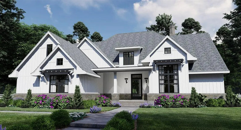 You'll love this chocolate-box, two-story house plan. The Pine Meadow farmhouse style home spans across2,100 square feet and boasts an impressiveshaded porch, soaring vaulted ceiling, and spectacular lanai with built-in grill.