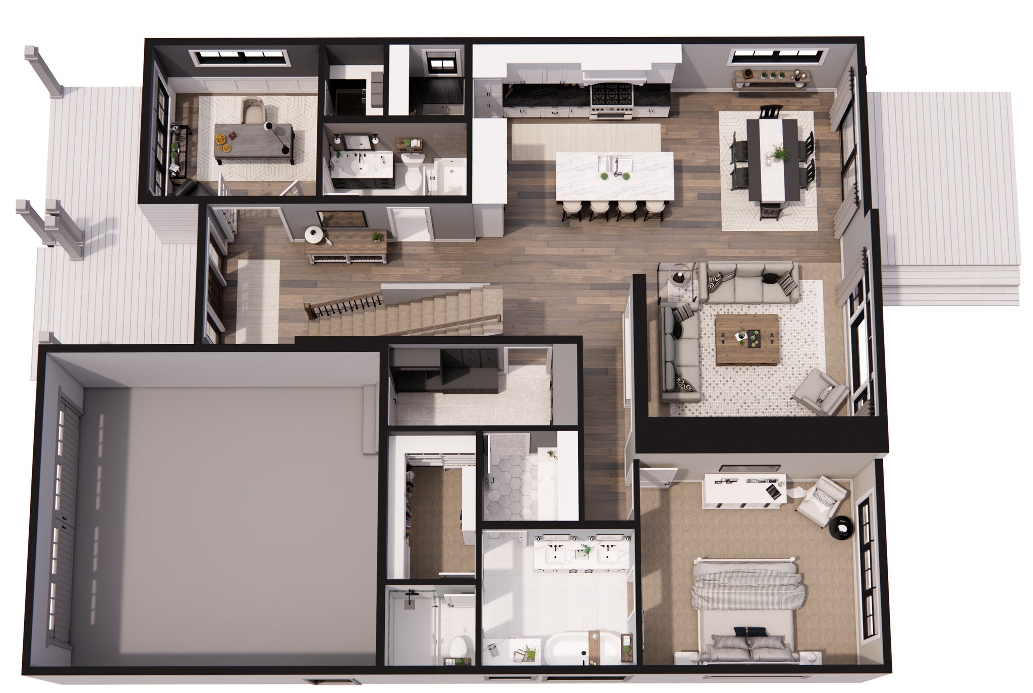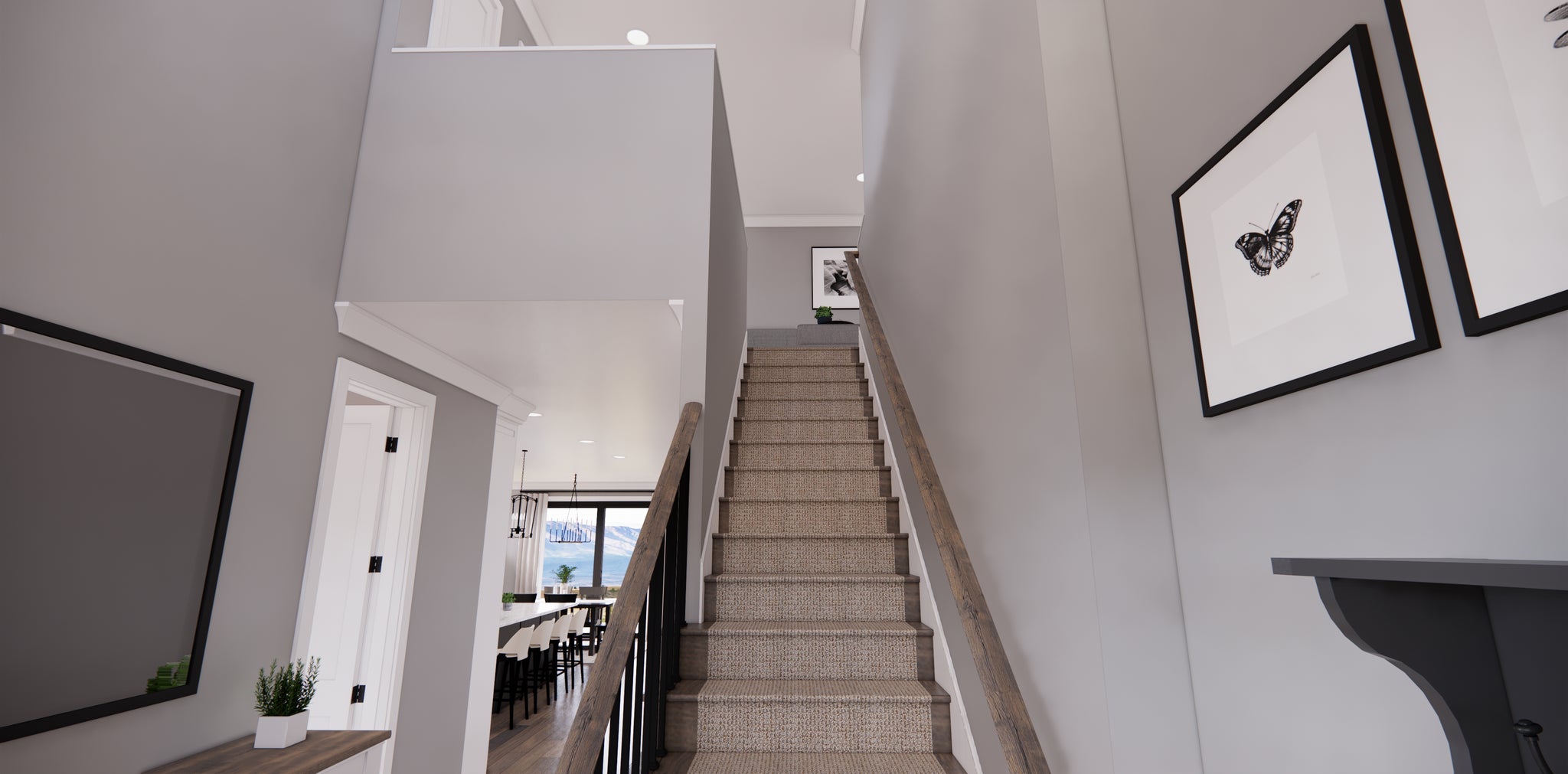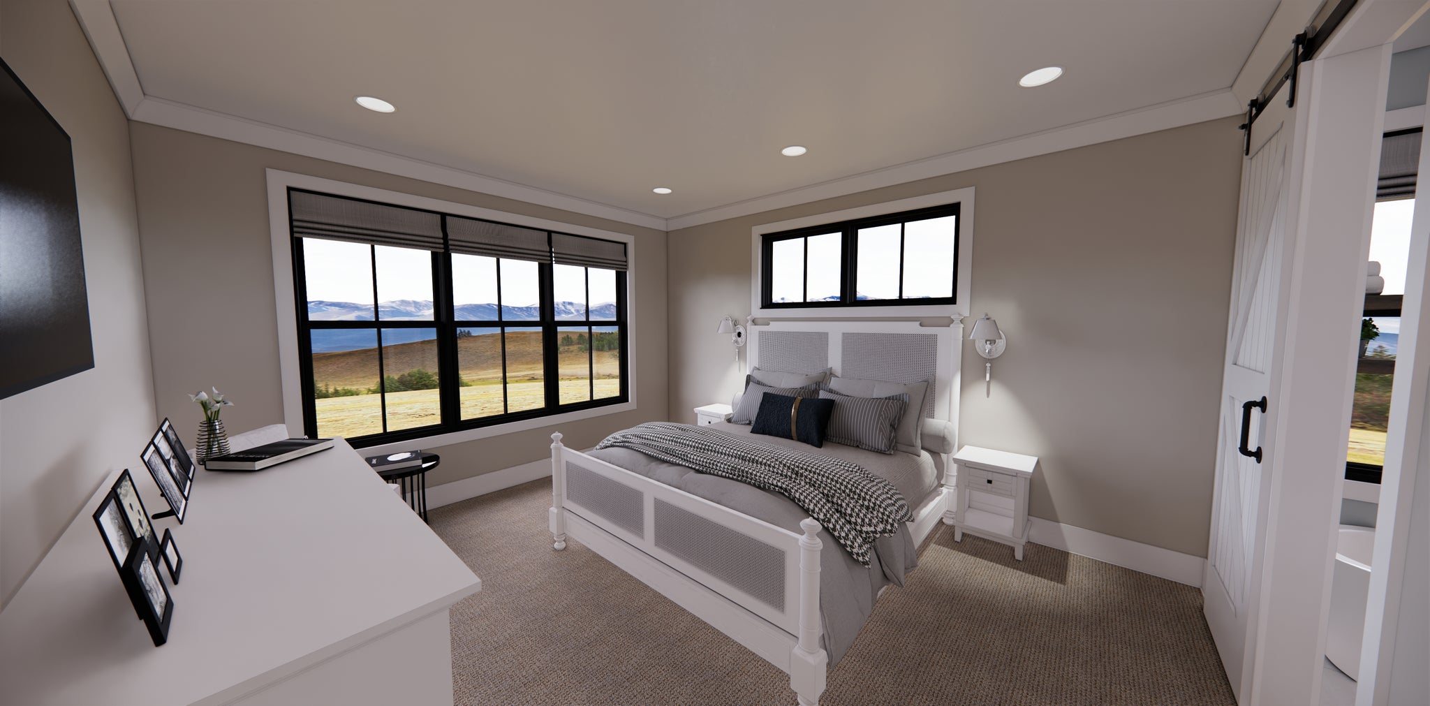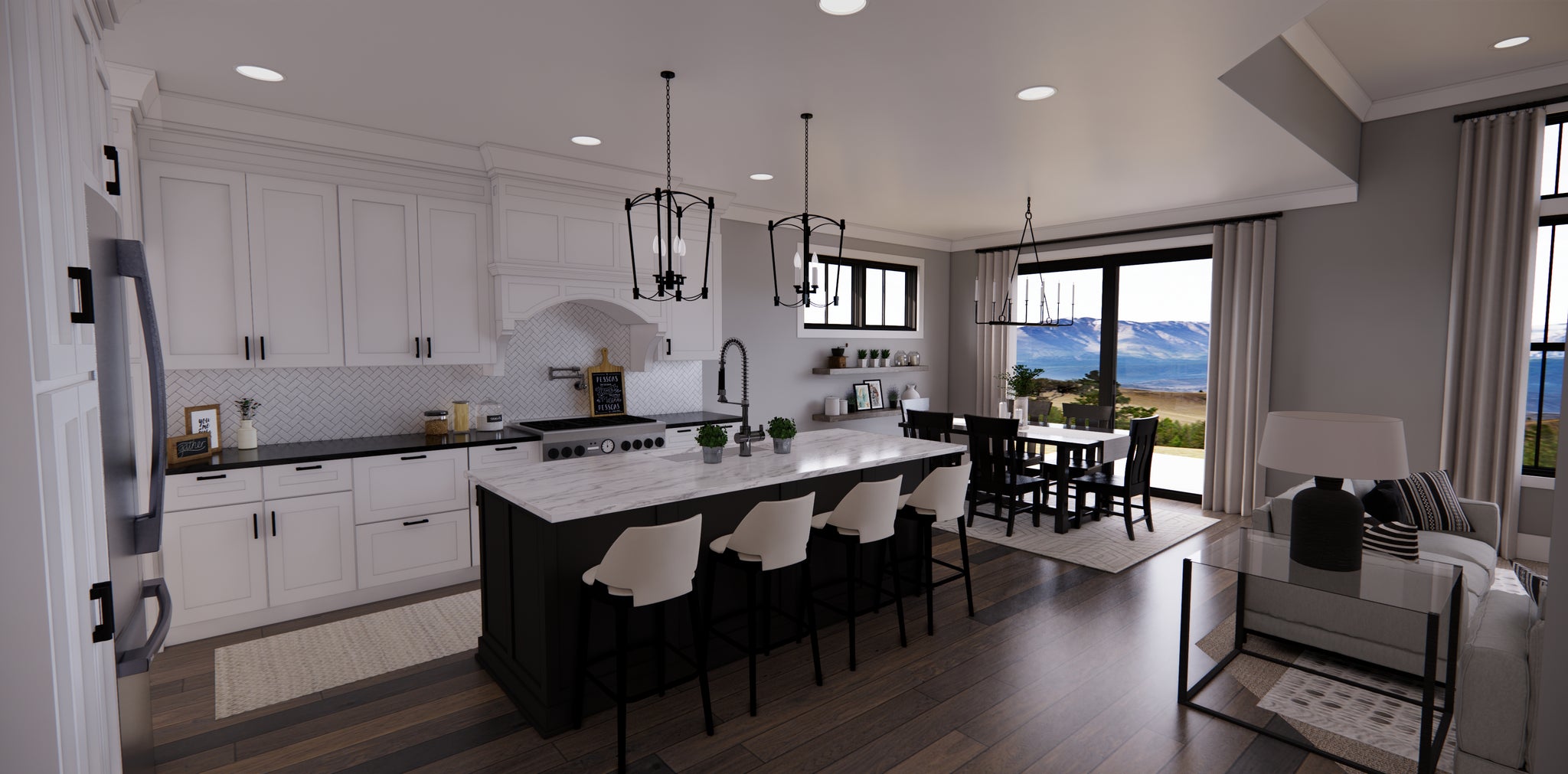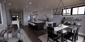 This stunning 2-story Modern Farmhouse blends natural materials with sleek design elements, creating a warm and inviting exterior of wood, steel, and timber. Inside, you’ll find 2,341 sq ft of comfortable living space with 3 bedrooms and 3.5 bathrooms. The spacious foyer offers clear sight lines from front to rear, opening into an expansive great room with a cozy fireplace—perfect for relaxing or entertaining. The open-concept kitchen is a chef’s dream, complete with a large island that seats four, ample cabinetry, a walk-in pantry, and an adjacent dining area with sliding door access to the rear for seamless indoor-outdoor living.