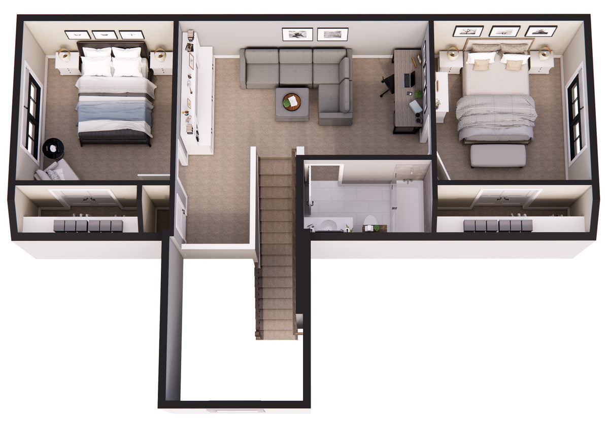 • Second Level Floor Plan: Layout of the second floor, including room dimensions and door/window placements.