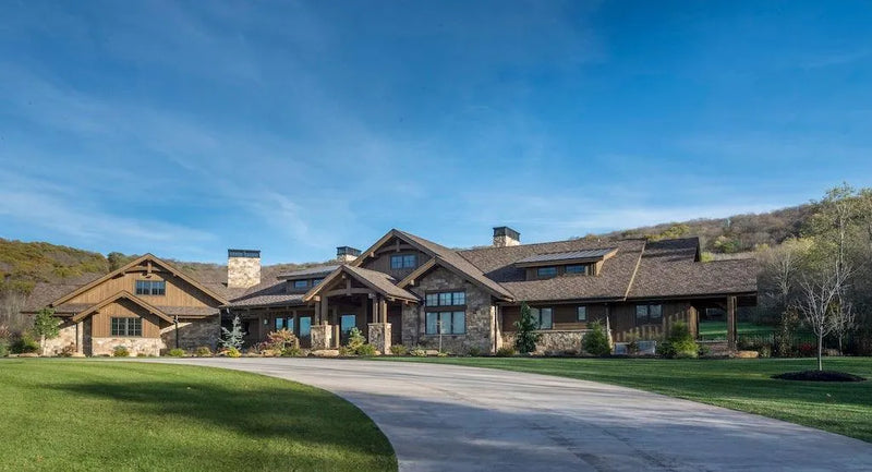 Welcome to this stunning stone exterior home, boasting a total living area of 3,623 sq ft. The expansive first floor provides 3,623 sq ft of heated space, seamlessly connected to a spacious basement of 2,080 sq ft, perfect for additional living, entertainment, or storage options. Enjoy outdoor relaxation with a total porch area of 1,253 sq ft, ideal for gatherings or serene evenings. The side-load garage offers 1,478 sq ft of space for up to three vehicles, ensuring convenience and ample storage. Inside, this thoughtfully designed home features two spacious bedrooms, two full bathrooms, and a convenient half bathroom. Constructed with durable 2x6 wall framing, the house spans 154'-4'' in width and 81' in depth, reaching a height of 27'-8''. Both the first floor and basement have 10' ceiling heights, enhancing the open, airy feel throughout. Experience luxurious living in this exceptional home!