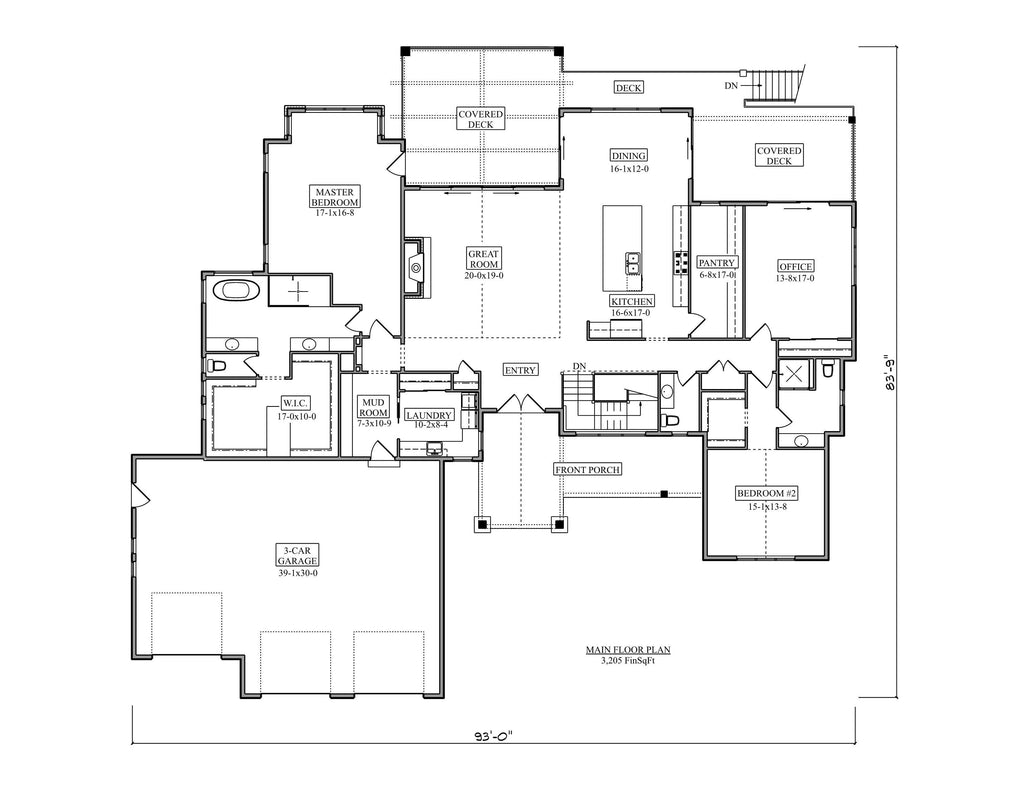 Discover this expansive family retreat featuring a total living area of 3,205 sq ft, designed for comfort and functionality. The first floor offers a generous 3,205 sq ft of heated space, while the walkout basement adds an additional 2,508 sq ft, perfect for recreation or additional living areas. Enjoy outdoor living with a stunning 1,333 sq ft deck, ideal for entertaining or relaxing. The front-loaded garage provides 1,162 sq ft of space and accommodates three vehicles, ensuring convenience for your family. This home includes three bedrooms, two full bathrooms, and one half bathroom, making it perfect for family life. Built on a sturdy 2x6 wall framing foundation, the house measures 93' in width and 83'-9" in depth, with a building height of 22'-3". Both floors feature impressive 10' ceiling heights, enhancing the airy, spacious feel throughout. Embrace the lifestyle you've always wanted in this beautiful and versatile home!