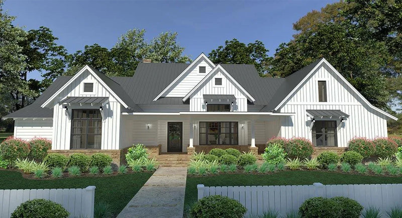 This nostalgic three-bedroom farmhouse design includes a versatile study that would make a great home office. The welcoming front porch opens to the foyer, with its handy coat closet. A powder room allows visitors to freshen up after a long drive. A fireplace enhances the sizable family room. When weather allows, you can expand your entertaining to the breezy lanai. The island kitchen serves the dining room with style and grace; note the convenient pantry. A garden tub anchors the superb master suite, where you can relax and unwind after a busy day. Two more bedrooms share a split bath. A bonus room above the garage would make a very nice art studio or in-law apartment.