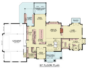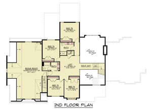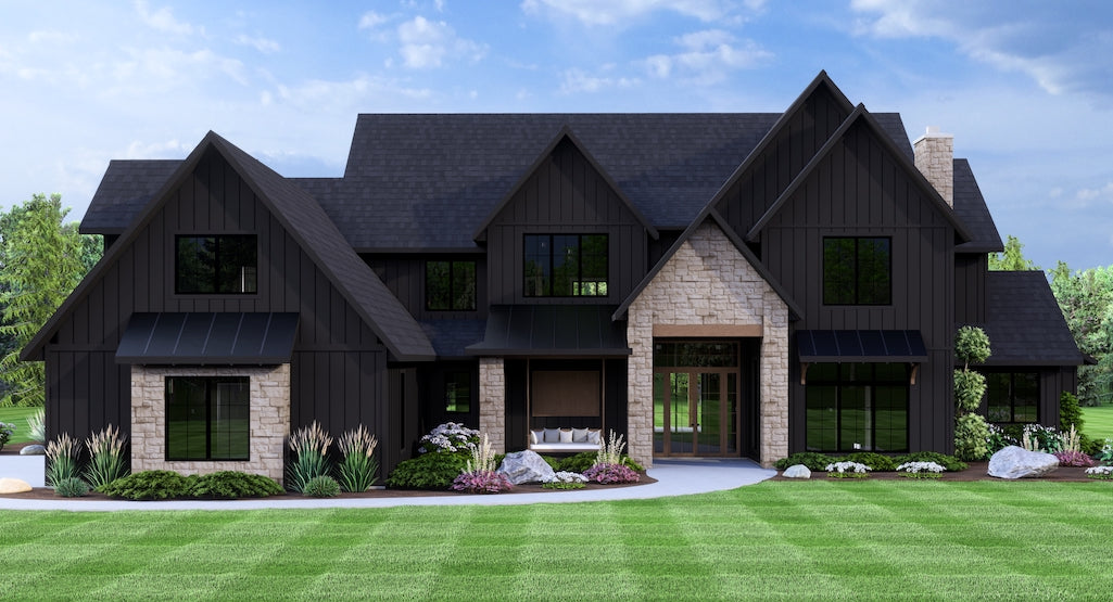 This New American house plan combines style, space, and versatility, offering a generous 5,492 square feet of heated living area with 4 bedrooms, 4.5 bathrooms, and a bonus room. With the bonus room's full bath, this space can easily serve as a fifth bedroom, providing flexibility for growing families or multi-generational living.