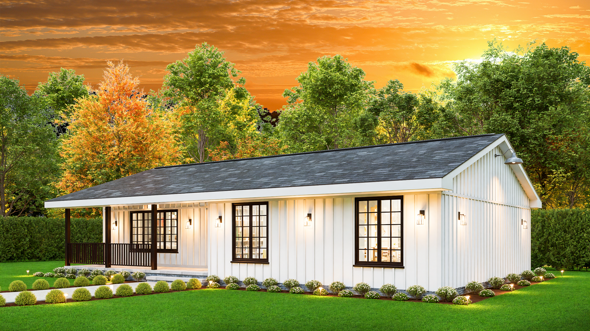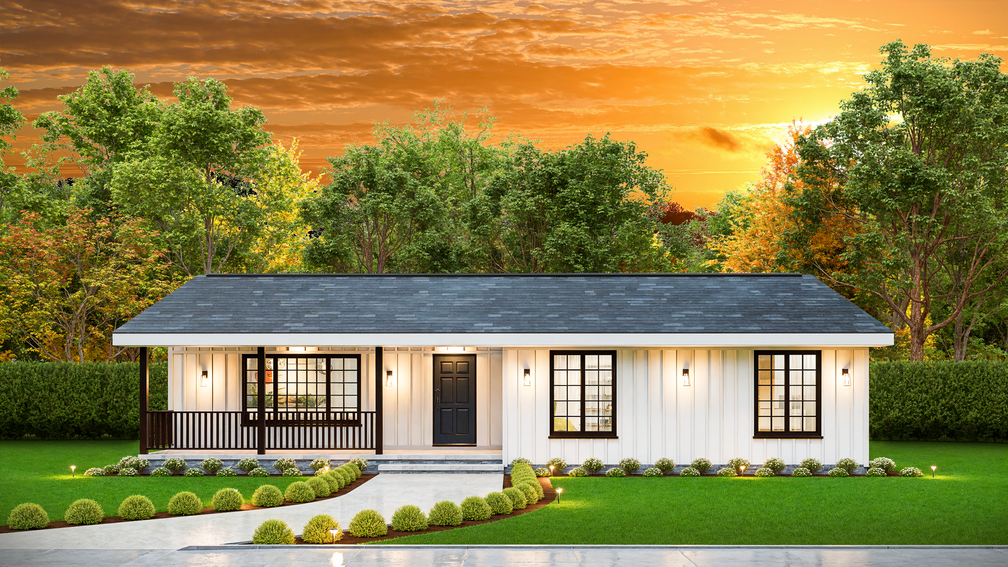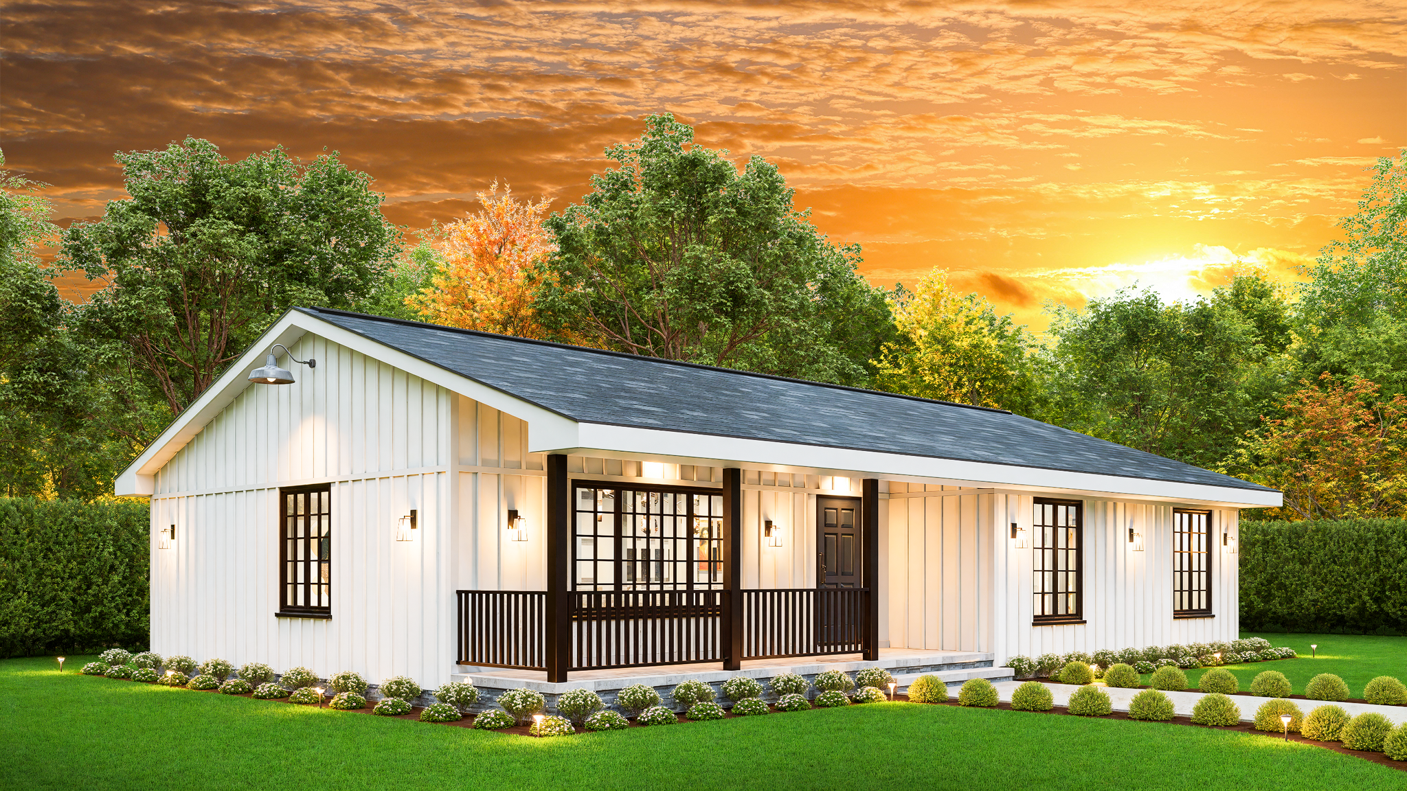 The Ramsey is a timeless country ranch-style home offering 1,456 sq ft of well-planned living space, perfect for families seeking affordable comfort with a classic design. From its large front porch with elegant Chippendale-style railings to its simple board & batten exterior and easy-to-maintain single-story layout, this home blends practicality with charm.