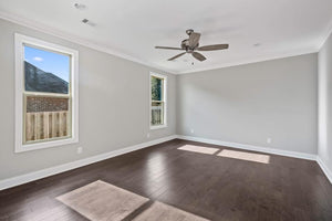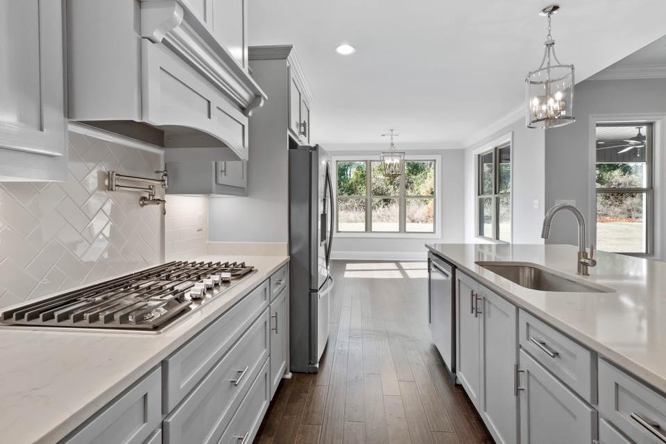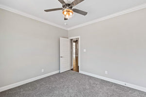 This 2,523 sq ft brick home offers a spacious and functional design with 4 bedrooms and 3 bathrooms, making it perfect for families or those who love to entertain. The first-floor master suite features his & hers closets, providing ample storage and privacy. The open floor plan seamlessly connects the living, dining, and kitchen areas, complete with a kitchen island, walk-in pantry, and butler’s pantry for added convenience. A peninsular bar creates a welcoming space for casual meals and gatherings.