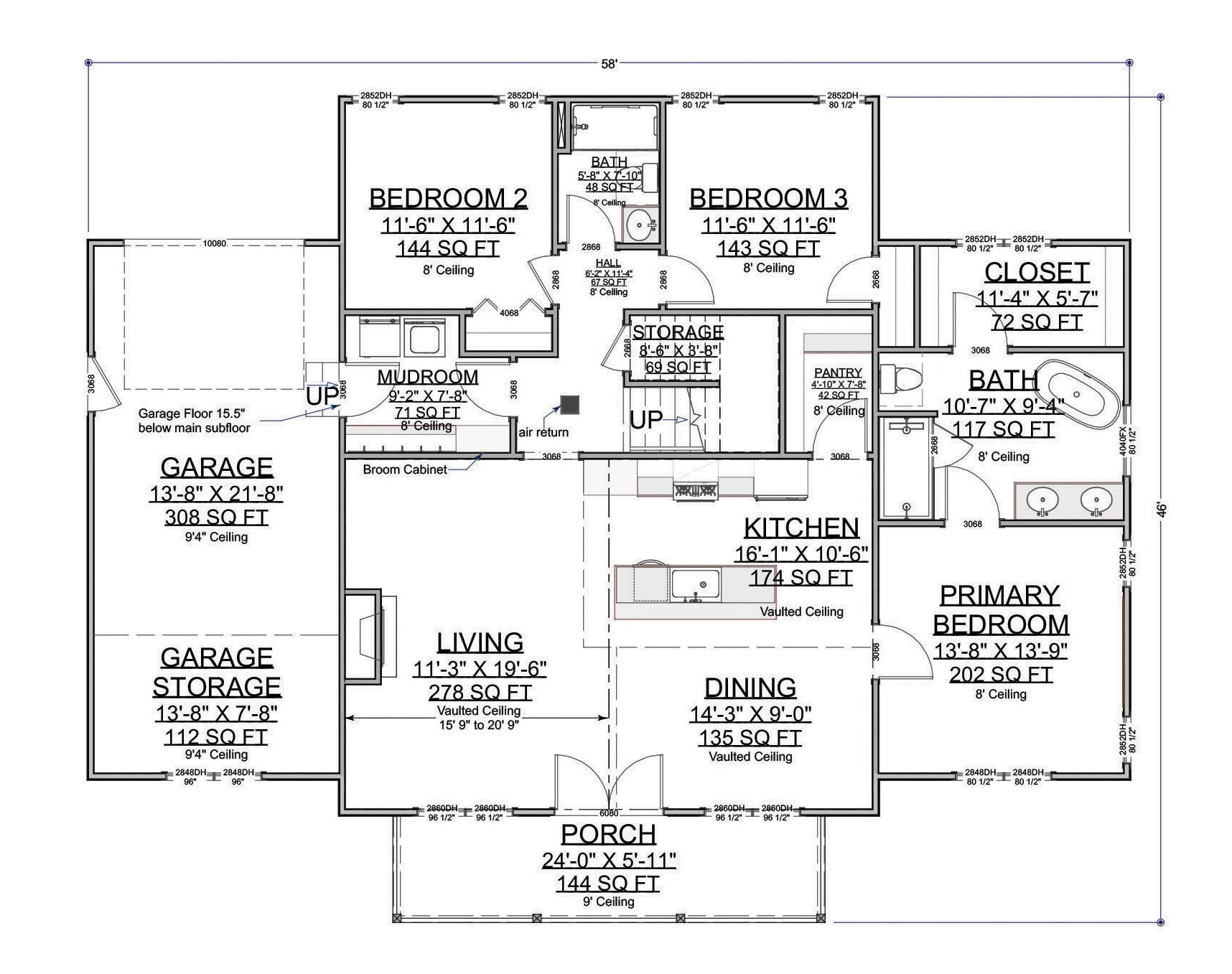 A versatile 240 sq ft bonus room above adds flexibility—ideal for a home office, playroom, or guest space. With a welcoming covered front porch, front-load garage, and classic rooflines (8:12 and 4:12 pitch), this home blends traditional curb appeal with modern functionality. Whether you're downsizing, starting a family, or seeking single-level living with a little extra space, this plan delivers charm and practicality in equal measure.