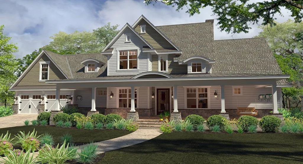 Rockin Horse farmhouse is a two-story, craftsman inspired house plan. An expansive front porch offers shade on sunny days and space for a real porch swing.A foyer and Dining area create an elegant entryway. Further into the home, the wide open family and designer kitchen can be enjoyed. The family features vaulted ceilings and has a stone fireplace ideal for cooler nights.