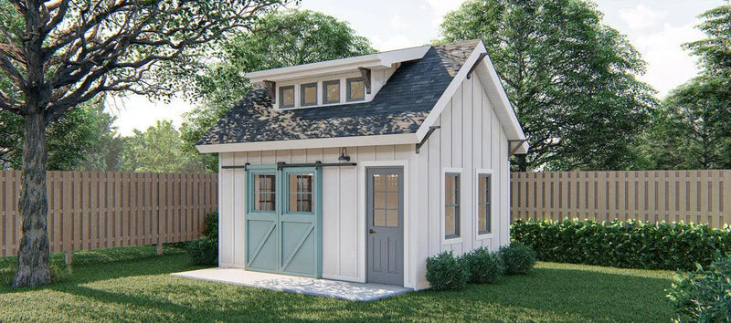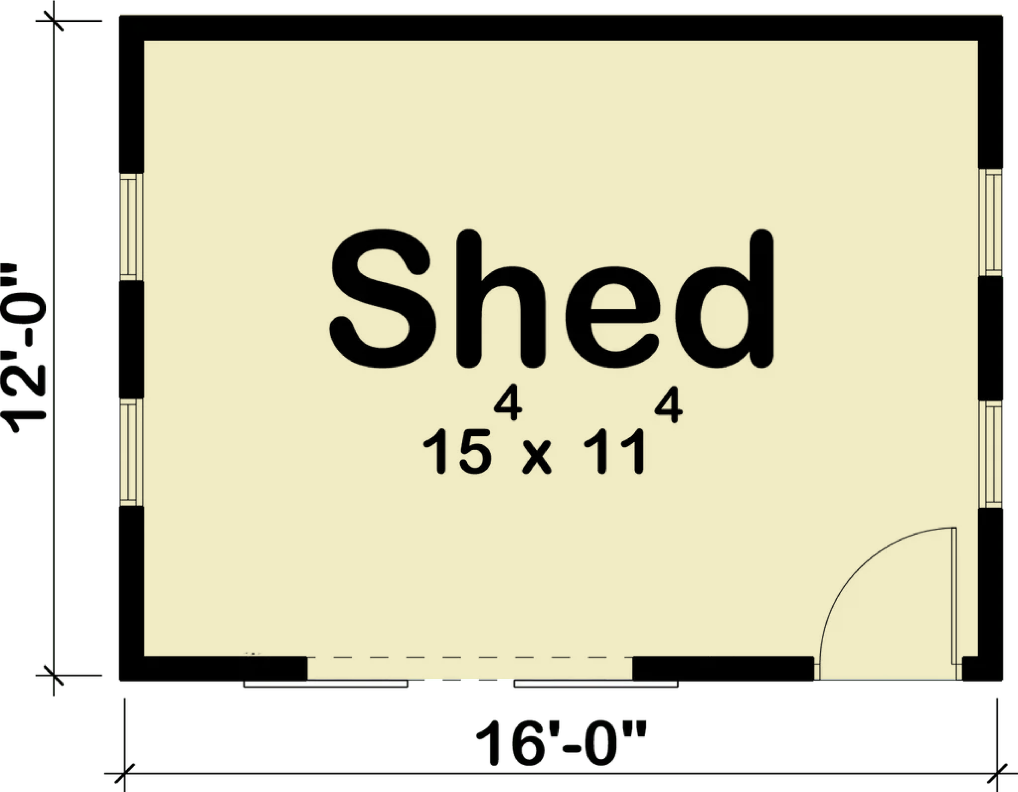 This compact storage building offers a functional design with a total area of 192 sq ft, perfect for organizing tools, equipment, or other belongings. Built on a slab foundation with 2x4 wall framing, it ensures durability and stability.