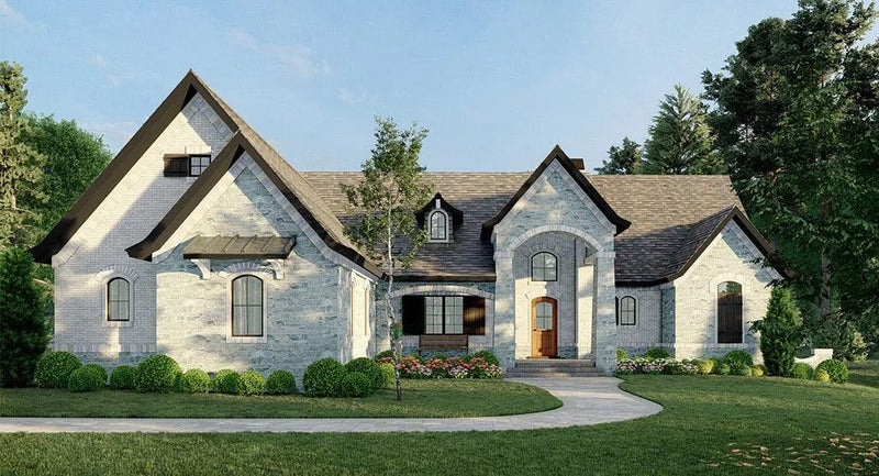 If entertaining is your passion the Rosie Ranch European inspired house plan will not disappoint. The gourmet kitchen is centrally located in between the dining and living room and creates the ideal setting to bond with family and friends. State-of-the-art appliances including a 6-burner range, large capacity refrigerator and double wall ovens will give the home chef all of the tools necessary to host the best parties on the block.