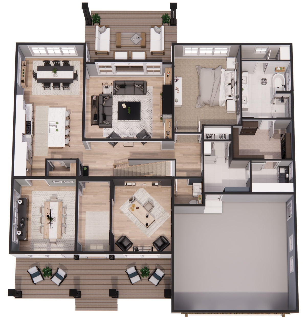 A complete set of working drawings delivered in digital PDF format. This option comes with a license to build ONE home and includes a copyright release for printing unlimited sets of plans and making modifications.