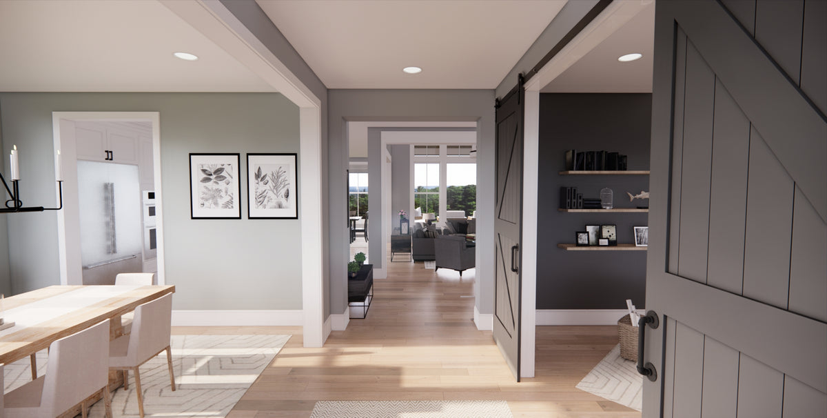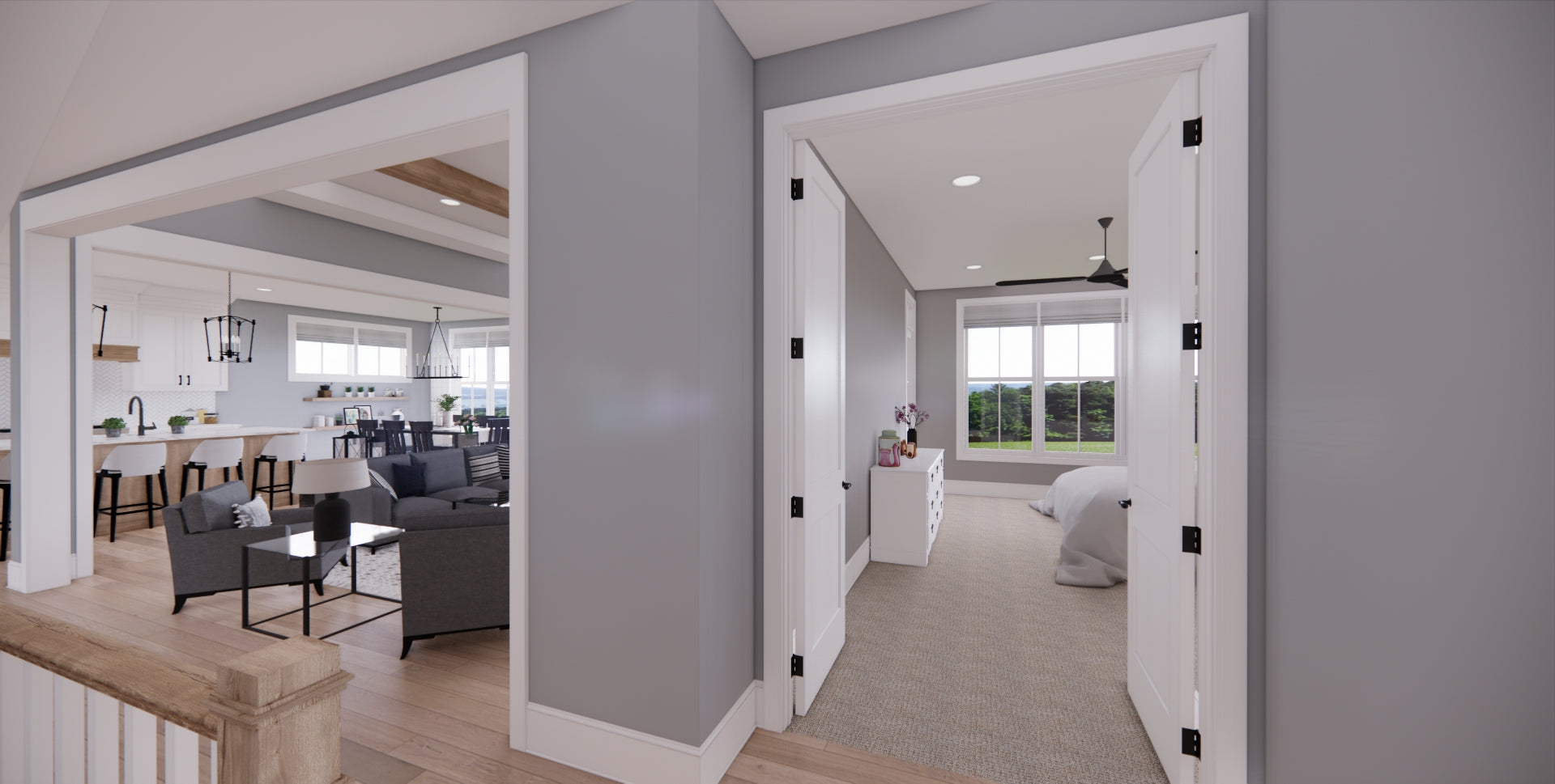 The kitchen is both beautiful and practical with a large center island that seats three, abundant cabinetry, and a walk-in pantry tucked behind a sliding barn door. Just off the main living space, the first-floor master suite serves as a peaceful retreat, featuring rear porch access, a spa-inspired bathroom with dual vanities, soaking tub, and an expansive walk-in closet. Upstairs, four more bedrooms surround a spacious step-up loft—ideal as a family room or game zone—along with two full baths and generous storage. Additional highlights include a dedicated office, mudroom, and future bonus space, making this a home that grows with your lifestyle.