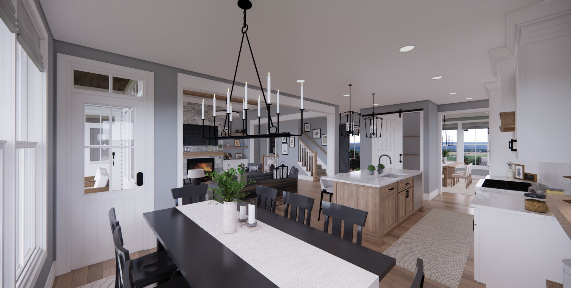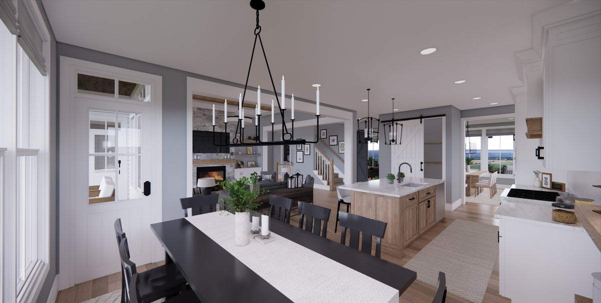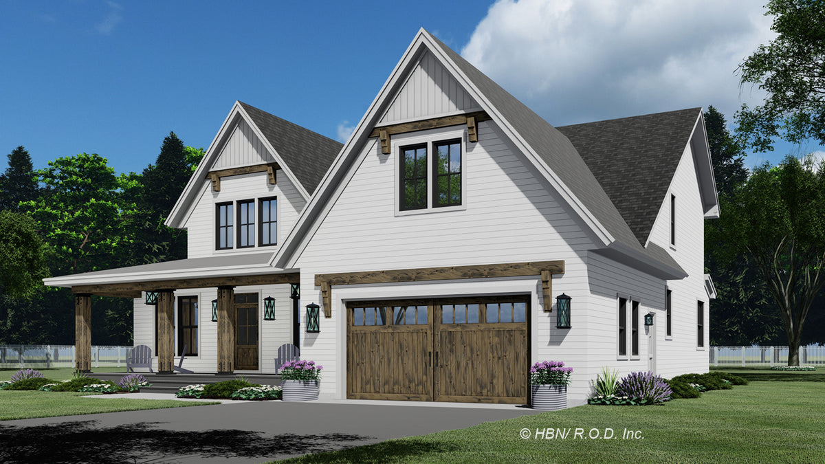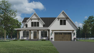 This striking 2-story, 3,510 sq. ft. Modern Farmhouse blends classic charm with modern luxury. Featuring 5 bedrooms, 3.5 bathrooms, and a 383 sq. ft. future bonus room above the 2-car garage, this home is thoughtfully designed for families who love both comfort and style. A gabled roofline and inviting covered porches create stunning curb appeal, while the open floor plan inside encourages seamless flow between the great room, formal dining, kitchen, and breakfast nook. The great room centers around a fireplace flanked by built-ins, with large windows offering views of the rear porch and natural light throughout.