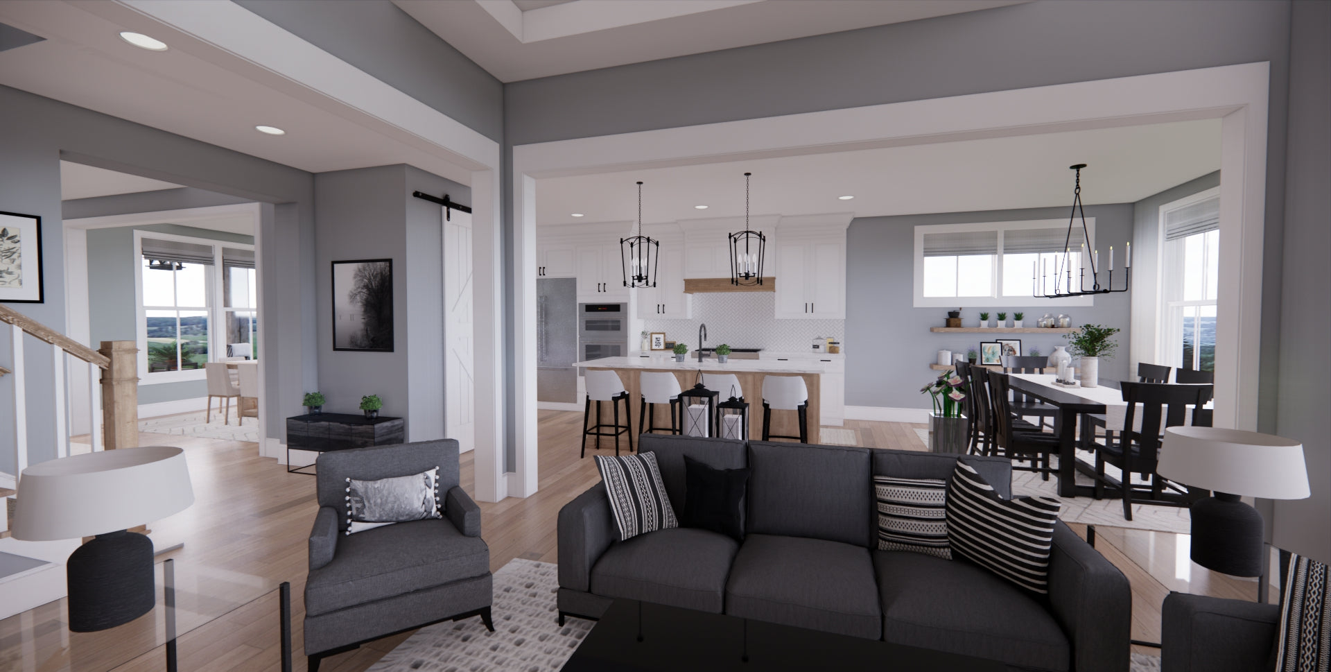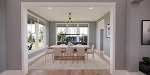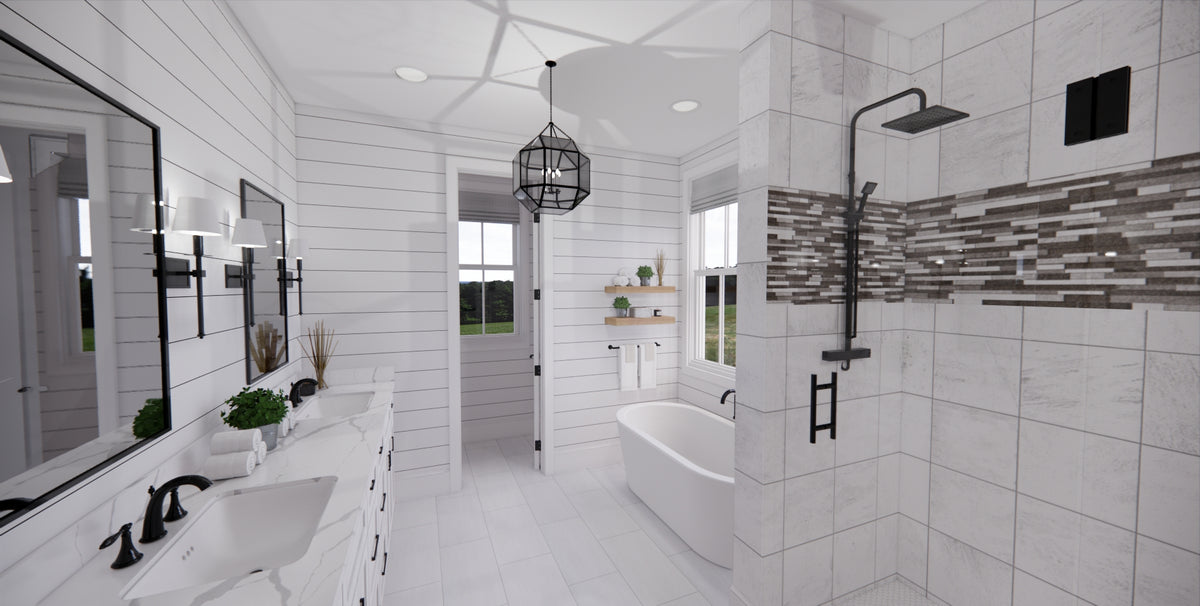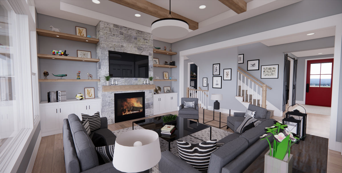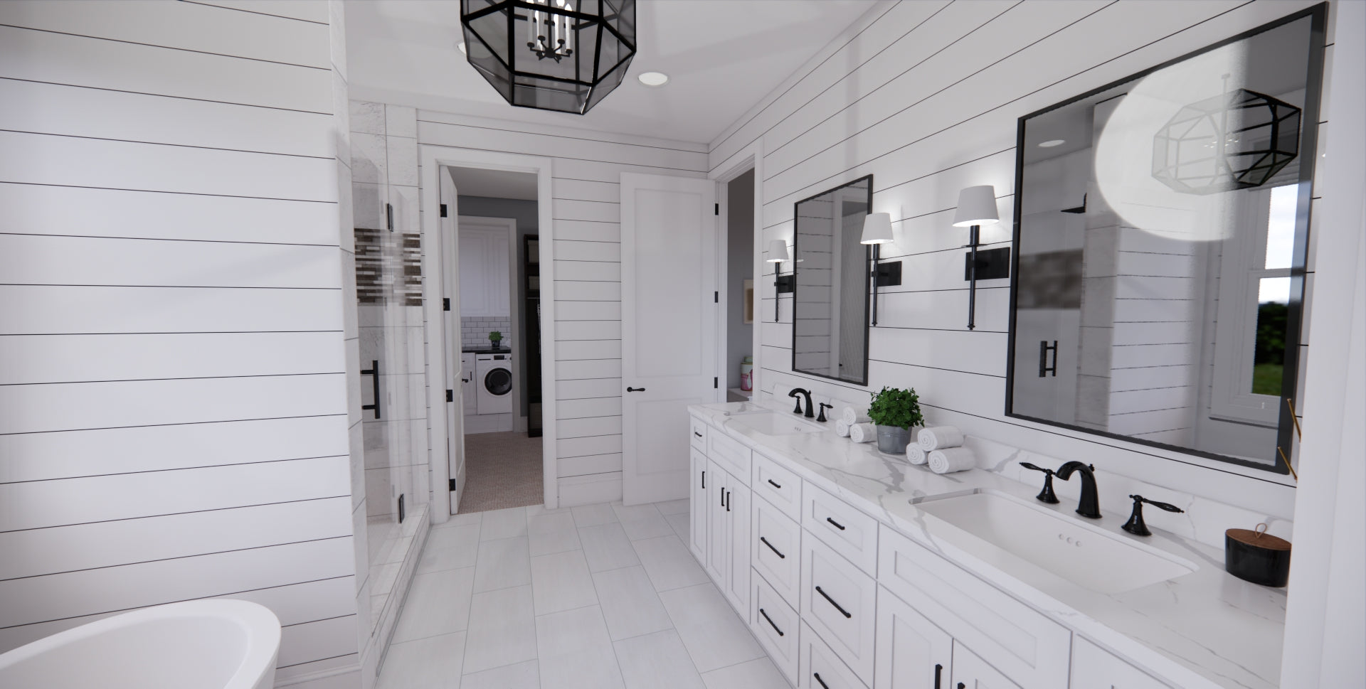 This striking 2-story, 3,510 sq. ft. Modern Farmhouse blends classic charm with modern luxury. Featuring 5 bedrooms, 3.5 bathrooms, and a 383 sq. ft. future bonus room above the 2-car garage, this home is thoughtfully designed for families who love both comfort and style. A gabled roofline and inviting covered porches create stunning curb appeal, while the open floor plan inside encourages seamless flow between the great room, formal dining, kitchen, and breakfast nook. The great room centers around a fireplace flanked by built-ins, with large windows offering views of the rear porch and natural light throughout.