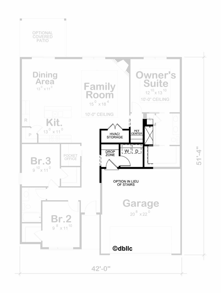 This thoughtfully designed 1,603-square-foot home with three bedrooms and two bathrooms features a distinctive shed roof over the garage for added character. The home’s open floor plan seamlessly connects the family room, dining area, and kitchen, with a cozy corner fireplace enhancing the living space. The kitchen, complete with a central island, offers ample meal prep space, while sliding doors off the dining area open to an optional covered patio, perfect for outdoor relaxation. A barn door leads to a pocket office, providing a quiet space for work or study.