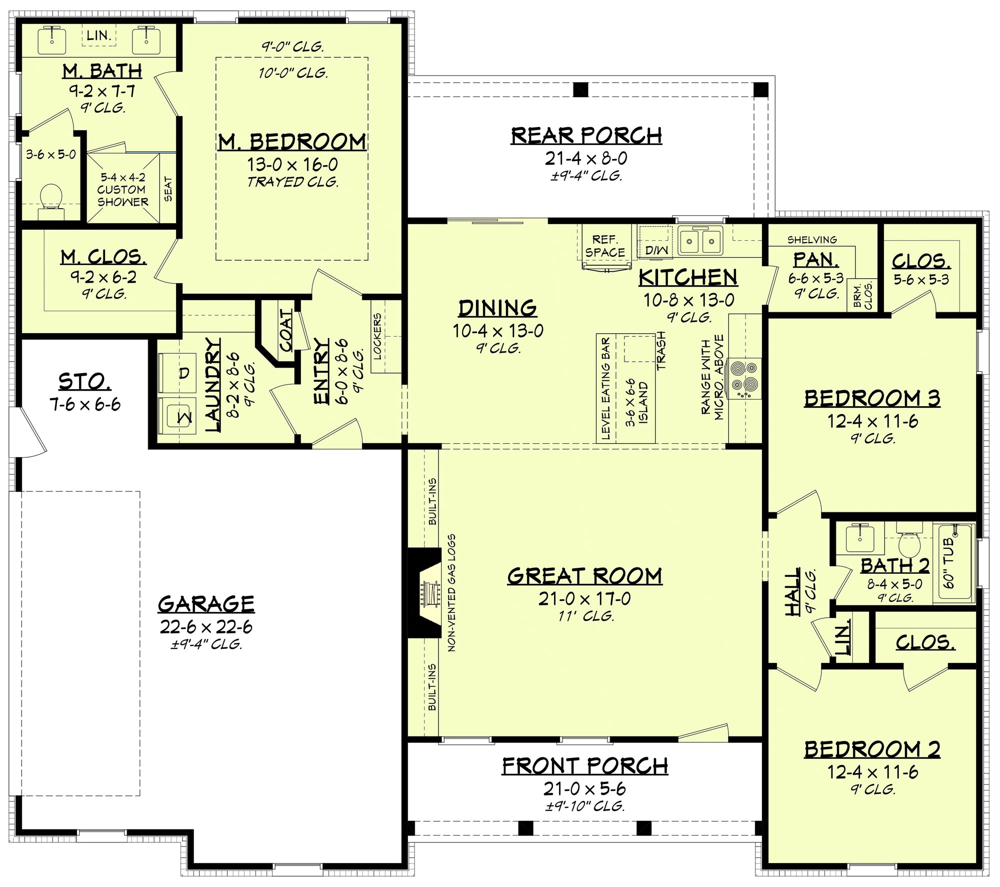 Discover the perfect blend of comfort and style in this beautifully designed house plan, featuring a total living area of 1,697 sq ft. With a welcoming front porch of 116 sq ft and a cozy rear porch of 171 sq ft, this home invites relaxation and outdoor enjoyment. The spacious layout includes three bedrooms and two bathrooms, ideal for families looking for both space and functionality.