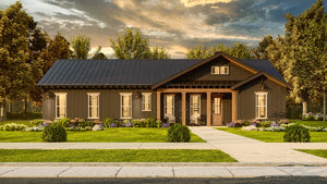 Five printed sets of working drawings shipped to you, plus a digital version in PDF format. This option comes with a license to build ONE home and includes a copyright release for printing unlimited sets of plans and making modifications.