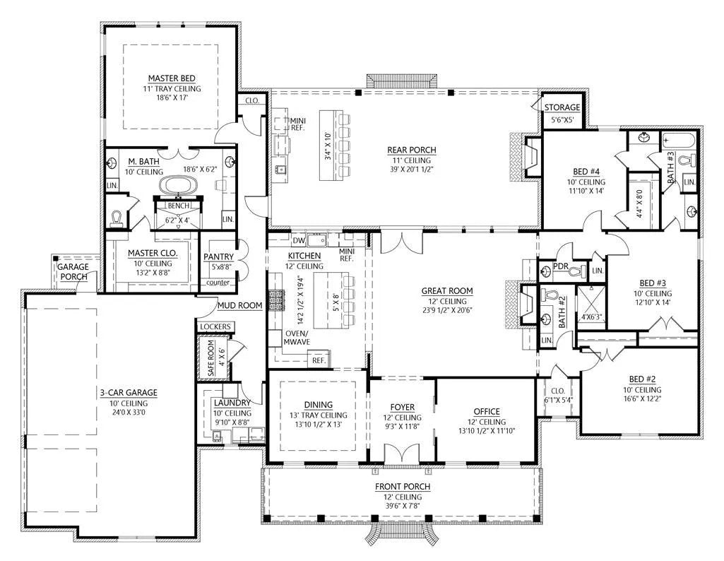 Introducing a stunning 4-bedroom residence, offering a generous total living area of 3,514 sq ft, all situated on the first floor. This home is designed for both comfort and functionality, featuring an inviting front porch (321 sq ft) and a spacious rear porch (791 sq ft) for outdoor entertaining. Additionally, enjoy a cozy side porch (35 sq ft) and a total porch area of 1,105 sq ft, perfect for relaxing in the fresh air.