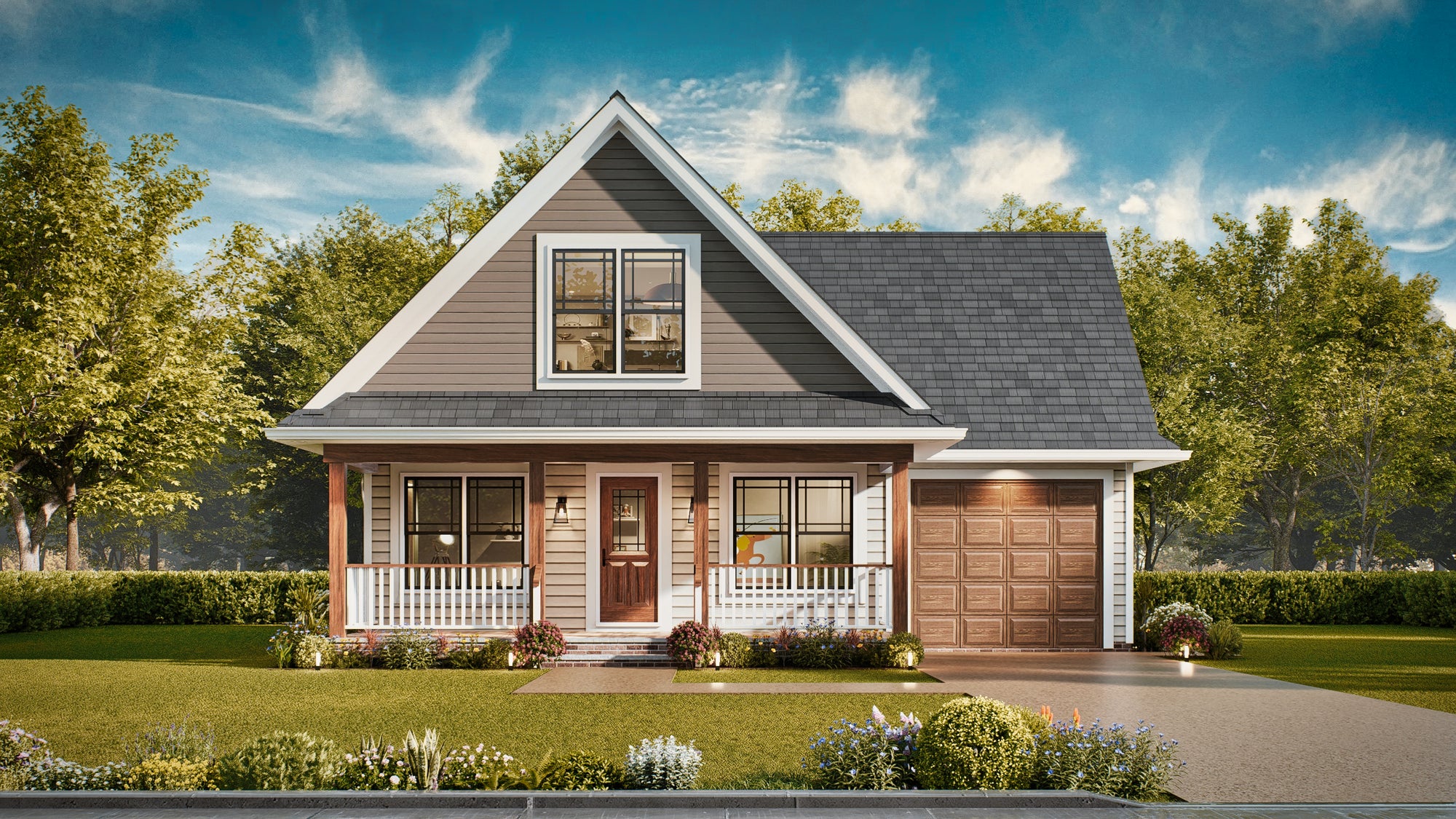 Upstairs, you'll find two clustered bedrooms and a shared bath, plus a 198 sq. ft. unfinished bonus/recreational room — perfect for a future playroom, office, or media space. With a front-load single-car garage (264 sq. ft.), stick-framed construction, and classic 2x4 siding, this home balances affordability with flexibility. Designed in a farmhouse-traditional style with a steep 12:12 roof pitch, it’s both timeless and functional, making it a great fit for growing families or downsizers wanting thoughtful space.