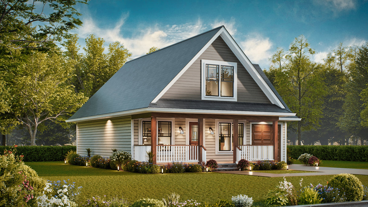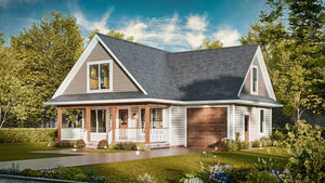 This delightful 1,272 sq. ft. two-story home is a perfect blend of farmhouse warmth and modern practicality. Featuring 3 bedrooms and 2 full baths, the design includes a convenient first-floor master suite with a walk-in closet and easy access to the laundry room. The covered front porch (192 sq. ft.) sets a welcoming tone and adds charming curb appeal, while the compact 36’ width makes this home ideal for tighter lots.