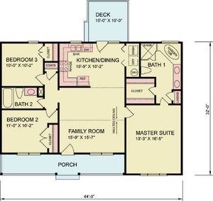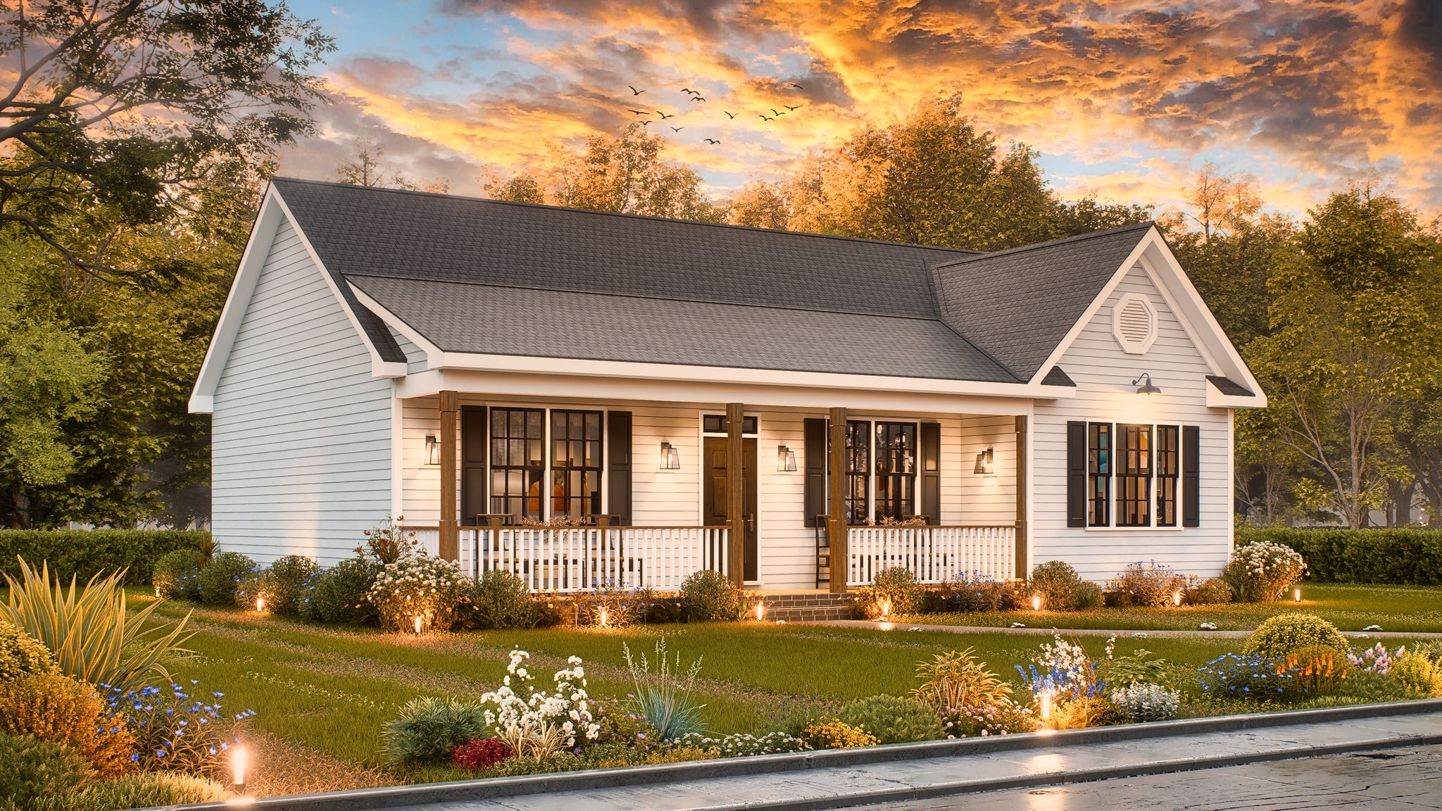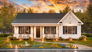 This 1,258 sq ft one-story home is designed for comfort, privacy, and style. With three bedrooms and two full bathrooms arranged in a split-bedroom layout, it offers an ideal setup for families or anyone seeking personal space. The first-floor master suite ensures privacy and convenience, while the vaulted ceilings in the main living area enhance the feeling of openness and light. At 44 feet wide and 42 feet deep, this home has a compact footprint that makes the most of every inch.