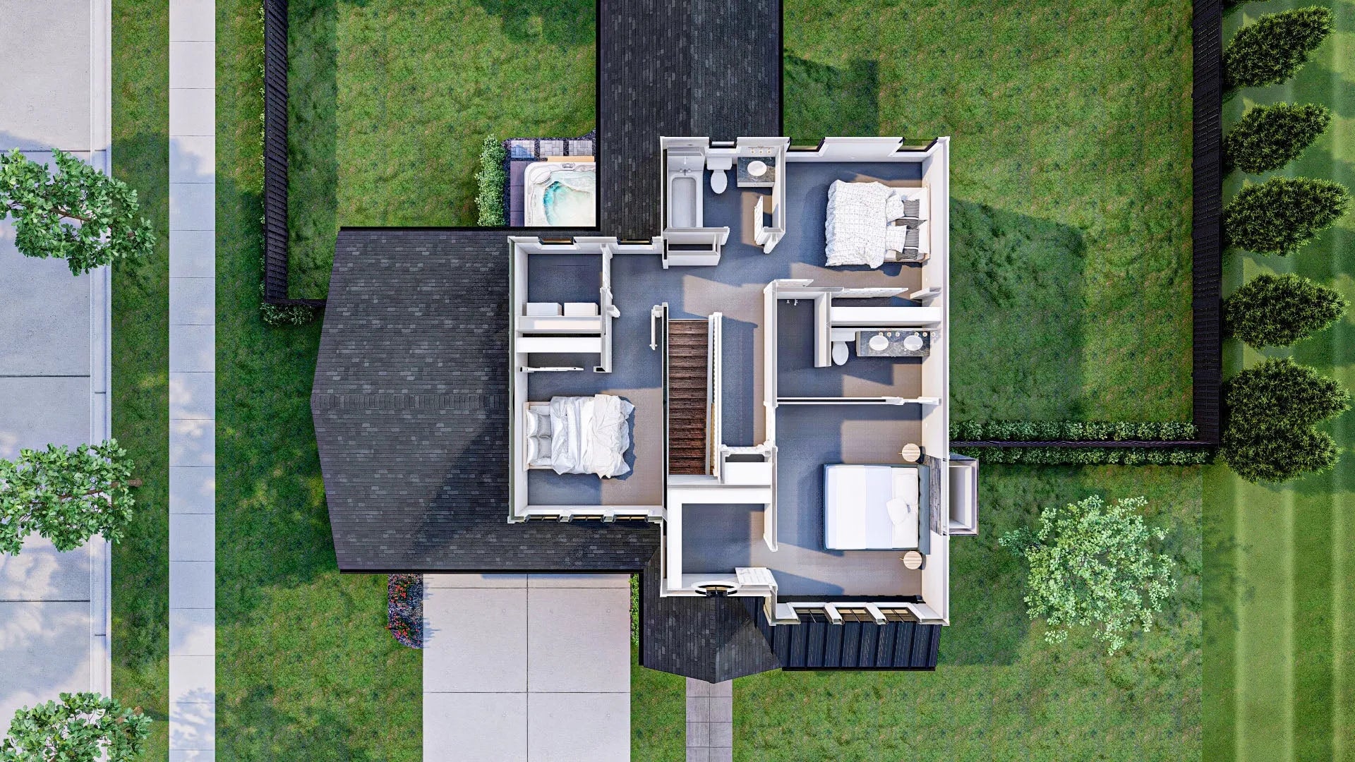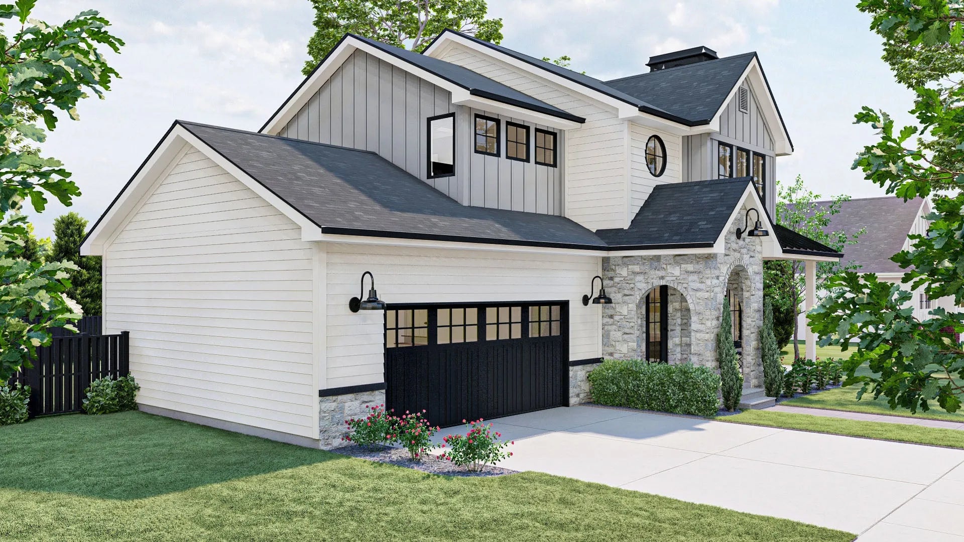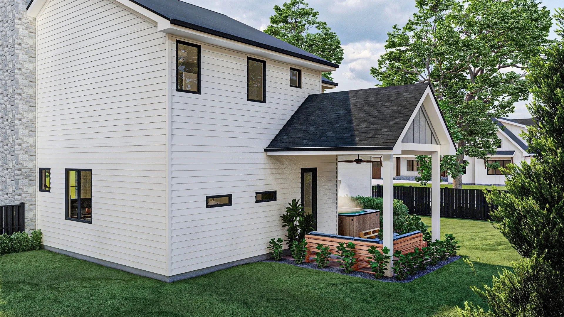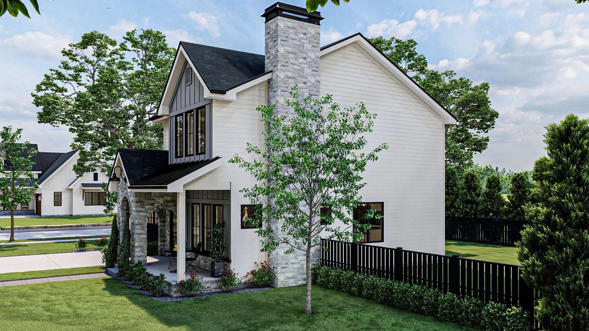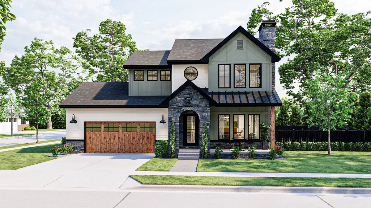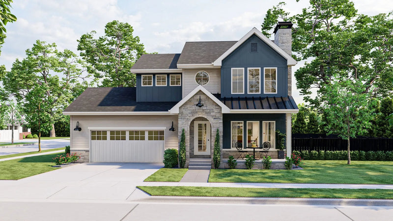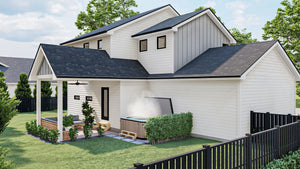 Upstairs, the 825 sq ft second floor houses all three bedrooms, including a spacious master suite with a private bath. A centrally located second-floor laundry room adds convenience, eliminating the need to carry laundry up and down stairs. The cluster bedroom layout provides privacy while maintaining proximity, making it ideal for families. With a stylish combination of 6:12 and 10:12 roof pitches, as well as 2x4 wall framing, this home blends traditional aesthetics with modern efficiency. Designed for both functionality and comfort, this home is perfect for those seeking a well-balanced living space.
