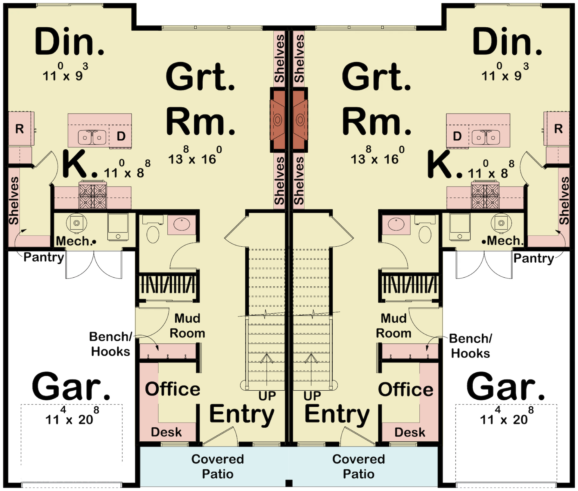 HVAC and plumbing drawings are not included. Your mechanical and plumbing subcontractors will determine the best layout for your site. Local HVAC codes, climatic requirements and commonly used systems vary throughout the country. The direction of how water flow will enter the home vary from case to case. For this reason, it is impossible to provide universal plans.
