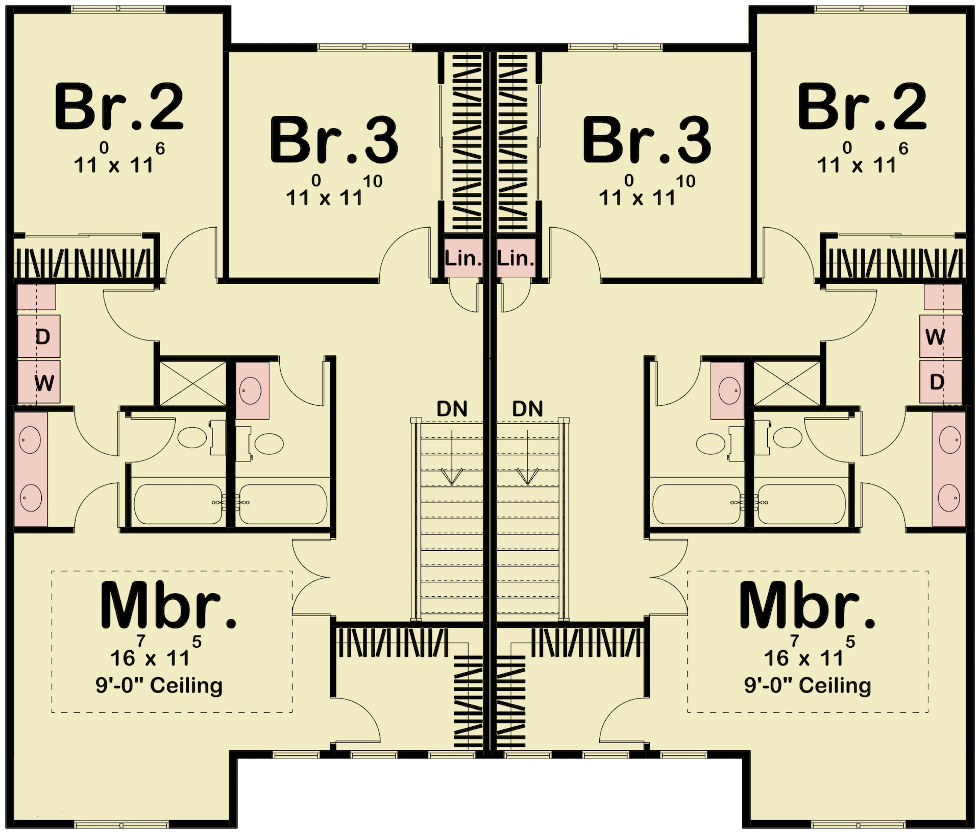 Heading upstairs is where all of the bedrooms can be found. The master is complete with a 9' ceiling, walk-in closet, private Hollywood bath with a double vanity, and access to the laundry room. Bedrooms 2 and 3 can also be found here, which share a hallway bath.