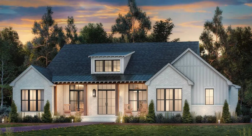 Discover this charming 2,349 sq ft residence, designed for modern living with a touch of elegance. This home features three spacious bedrooms, making it perfect for families or guests. The thoughtfully laid-out first floor includes 10-foot ceilings, enhancing the feeling of openness and comfort. Enjoy outdoor living with a welcoming front porch and a generous rear porch, totaling 672 sq ft of additional space for relaxation or entertaining. The 589 sq ft garage accommodates two vehicles, ensuring convenience while maintaining style. With its brick exterior and versatile roof pitches, this home blends classic charm with contemporary functionality. Don't miss the opportunity to make this beautiful space your own!