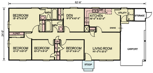 This 1,266 sq ft single-story home offers a functional and flexible design perfect for families, downsizers, or anyone seeking efficient living. With four bedrooms and two full bathrooms, it comfortably accommodates a variety of lifestyles. The layout includes a cozy den for relaxing or gathering, a private first-floor master suite, and a utility room for added convenience. At just 13'7" in height, this home maintains a low profile while offering essential features within a compact 63' x 28' footprint.