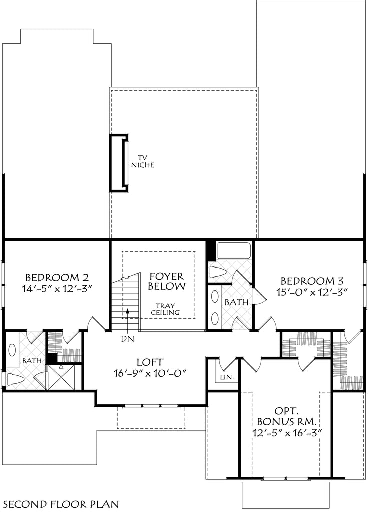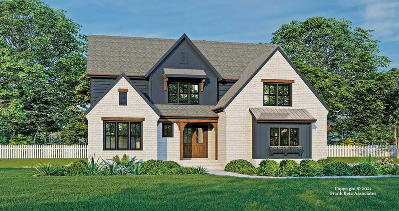 Good design in part is based on contrast and the visual aspect that contrast creates. The Teesdale design is a prime example of contrast. First, the materials are different in texture and the lines they present but blend to create an interesting elevation. Second, the colors of the painted brick are starkly different than the dark charcoal color of the claddings. The wide window groupings and timber accents complete the exterior. The main level is fresh, modern, and appointed with the most desired features. The Teesdale is an open-concept design with a first-floor master suite and flexible room that is a guest suite or a home office. The family room has a raised ceiling finished with beams and a warming fireplace. The dining area is positioned so it opens onto a covered grilling porch from which entertaining is a snap. The upper level has two additional bedrooms each with a bathroom and a great closet. At the top of the stairs is a loft that provides living space for studies or fun time. The optional bonus room has many functions from simple storage to recreation and exercise.