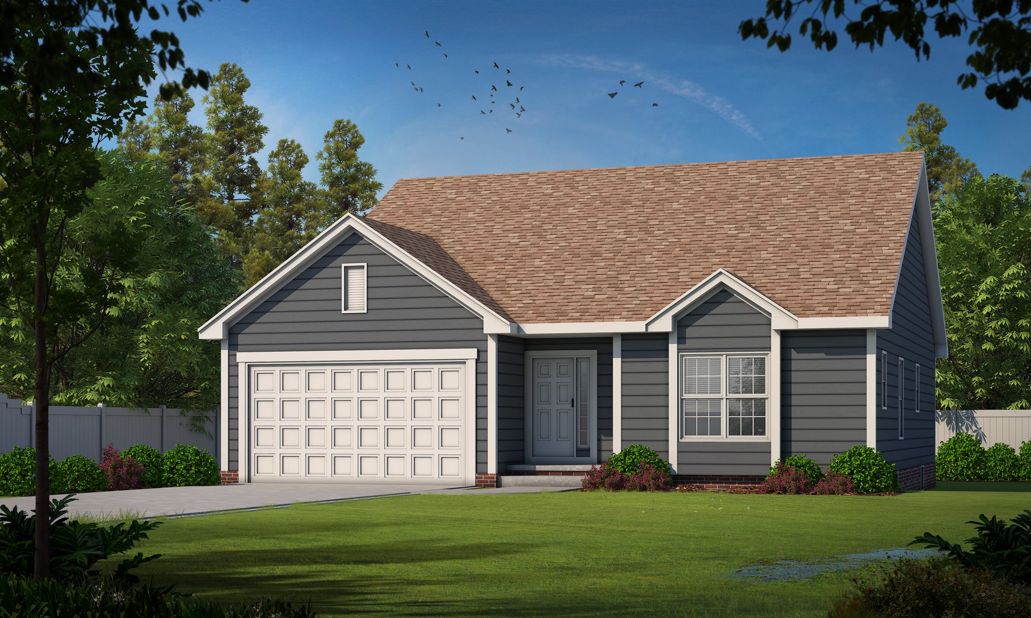 The kitchen features a central island for extra prep and seating space, and the nearby laundry room simplifies daily routines. A front-load two-car garage provides 423 sq ft of storage and access, while the unfinished basement offers room to expand or customize to fit your needs. With 9' ceilings, a mix of 7:12 and 6:12 roof pitches, and 2x4 wall framing, this home offers a timeless look and layout that works beautifully for families of all sizes.