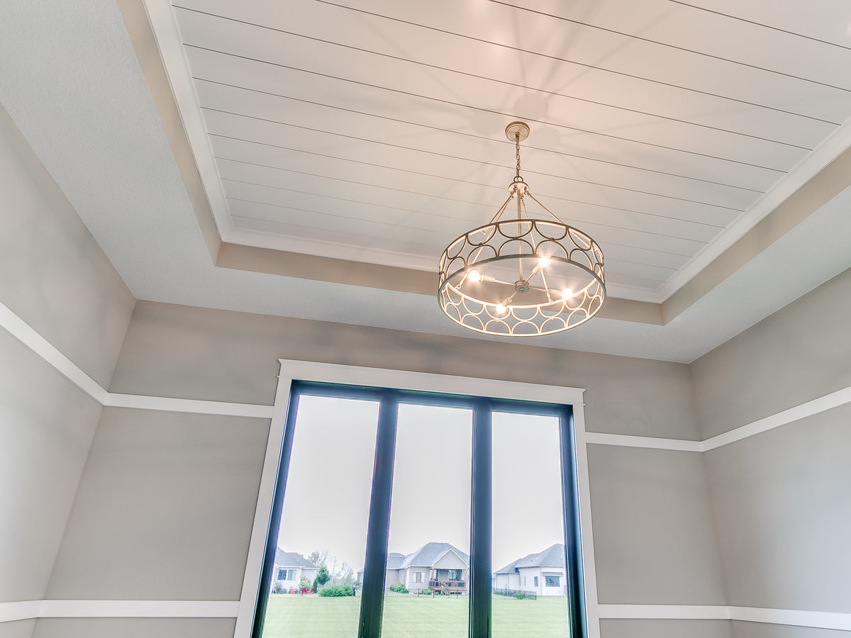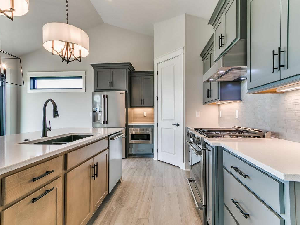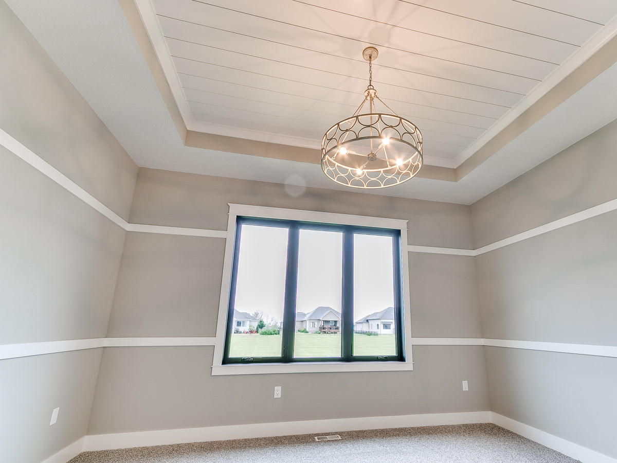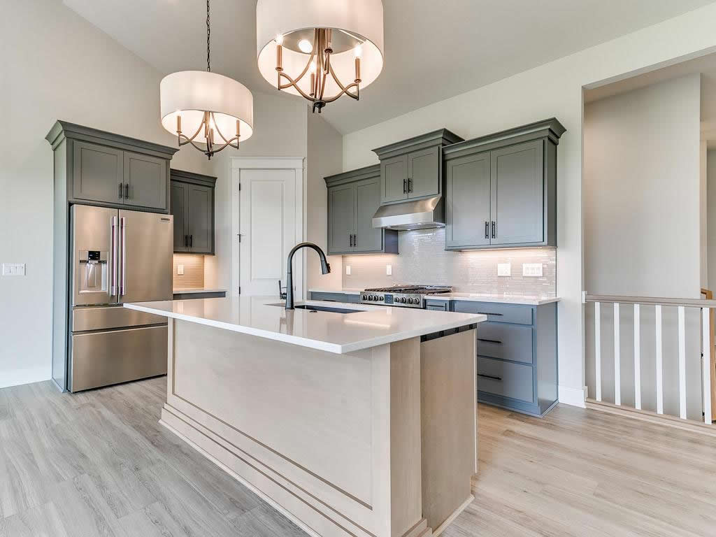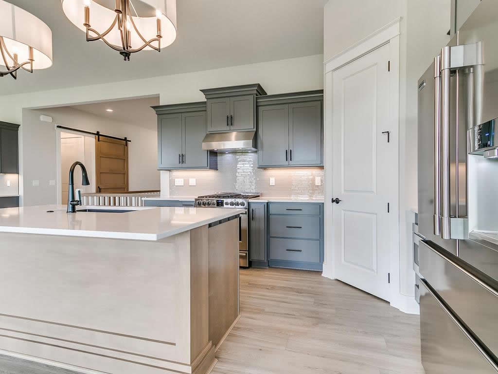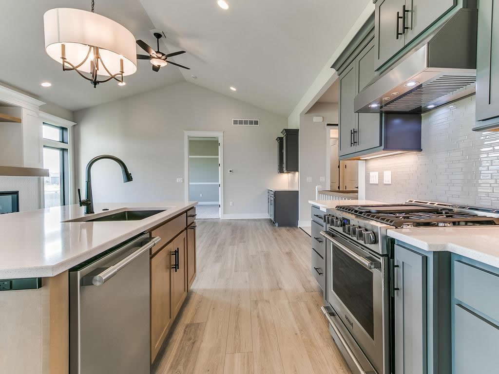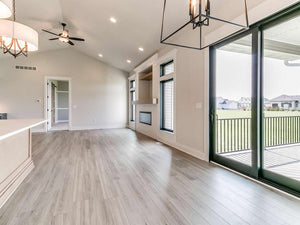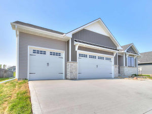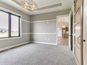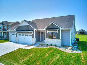 This modern one-level farmhouse offers 1,642 square feet of living space wrapped in classic board and batten siding with stone and metal roof accents for fresh curb appeal. The home’s split-bedroom layout provides extra privacy, placing two secondary bedrooms near the front and the owner's suite tucked quietly behind the three-car garage. A cathedral ceiling soars above the open-concept family room, kitchen, and dining area, making the space feel even larger and more inviting. The kitchen features a deep island with added storage, and the walk-in pantry keeps everything organized.