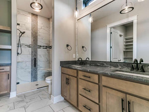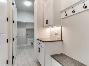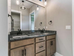 Practical touches enhance everyday living, like the mudroom drop zone with built-in lockers and the owner's walk-in closet connecting directly to the laundry room for easy morning routines. A Jack-and-Jill bath serves the secondary bedrooms, while a powder room offers extra convenience for guests — a rare find in a home of this size. With thoughtful details throughout, this design balances comfort, functionality, and stylish farmhouse charm perfectly.