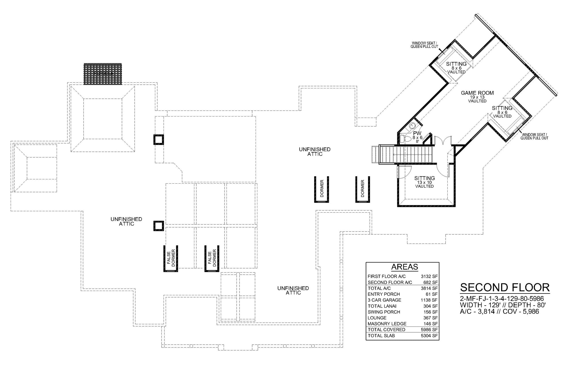 The second floor (682 sq. ft.) includes a spacious game room, offering a versatile space for recreation or an additional living area.