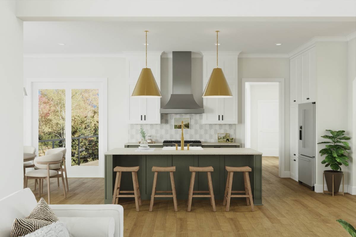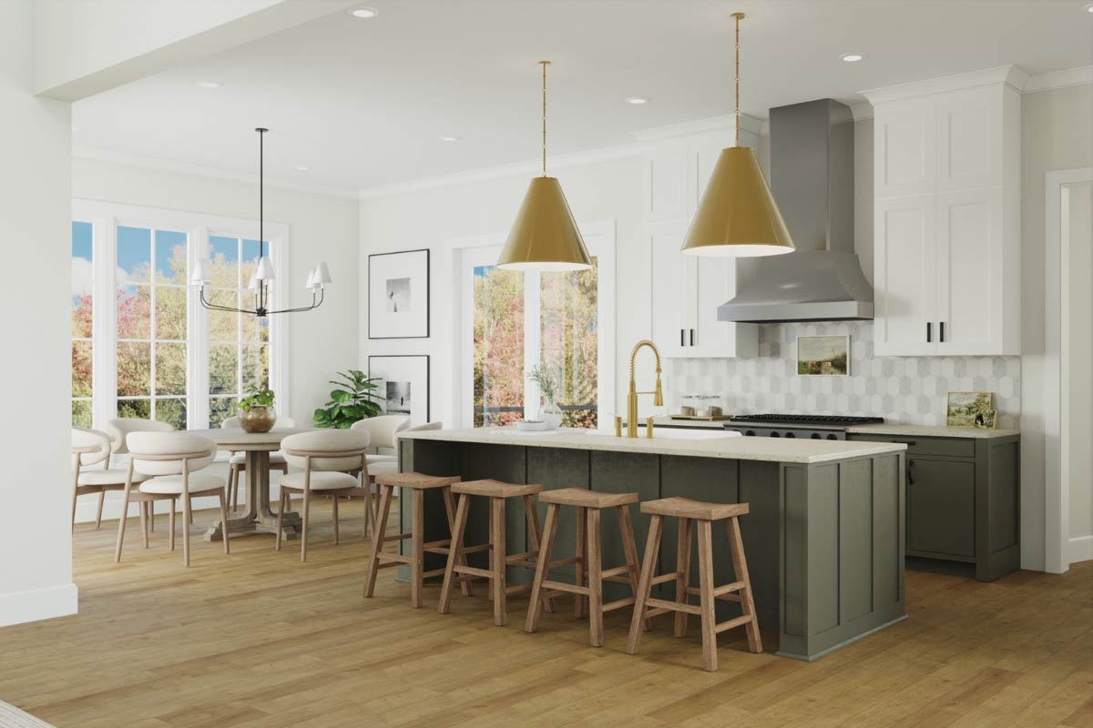 Upstairs, you'll find additional bedrooms and a full bath, while the 1,000 sq ft walkout basement expands your entertainment potential with a game room and a wet bar, perfect for hosting. The home's split-bedroom layout, breakfast nook, and abundant natural light make it ideal for both relaxed family living and refined entertaining. Whether you need space for a growing family, multi-generational living, or work-from-home setups, this plan combines comfort, charm, and flexibility in a stylish package.