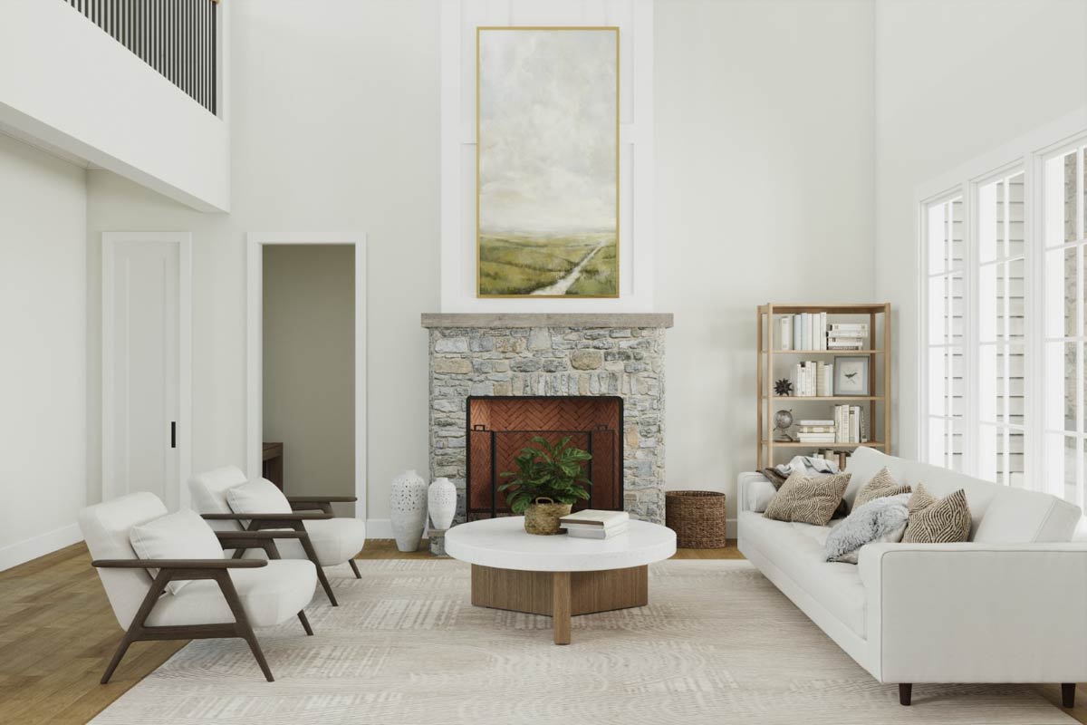 Designed for both elegance and functionality, this 2,858 sq ft home offers a dynamic floor plan with luxurious features and smart space utilization. The angled front-load garage adds curb appeal, while the 10-foot ceilings on the main level elevate the open-concept living areas, including a dramatic two-story grand room with fireplace. The first-floor master suite delivers convenience and privacy, paired with a spacious bath and walk-in closet. A den, flex room, and home office provide versatility to adapt the layout to your lifestyle. The mud room and first-floor laundry add daily efficiency.