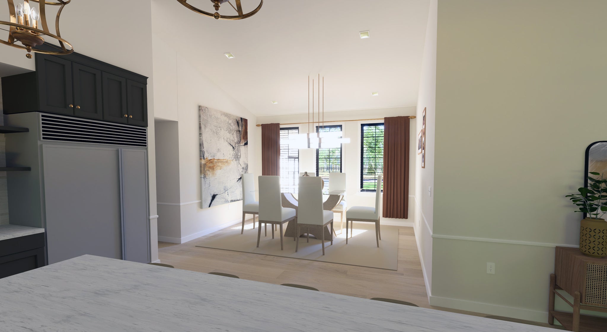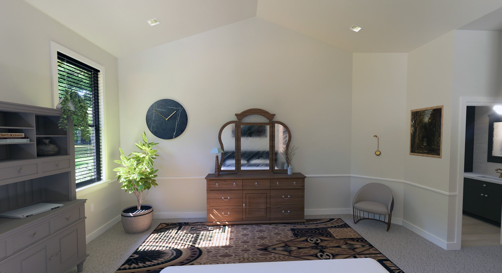 This expansive 4-bedroom modern ranch home offers 2,919 square feet of thoughtfully designed living space, all on a single level for ultimate convenience. The two-story grand room serves as the heart of the home, seamlessly connecting to the breakfast area, den, and a well-appointed kitchen with a walk-in pantry. The first-floor master suite features direct laundry access, a spacious walk-in closet, and a private bath, while the split-bedroom layout ensures privacy for family and guests. High 10-foot ceilings create an open, airy atmosphere throughout the home.