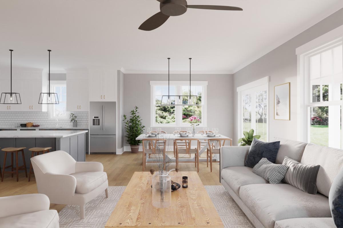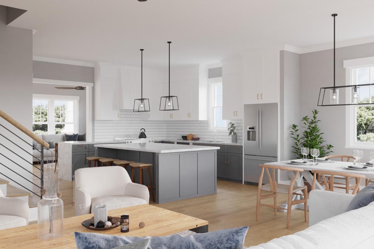 This 2,780 sq ft two-story home offers an exceptional layout designed for modern living, combining everyday function with standout style. The first floor features soaring 10-foot ceilings, a welcoming den, and a flexible space perfect for a home office or guest suite. A large kitchen with a central island anchors the living area, while the mud room provides practical storage just off the front-load two-car garage. Front and rear covered porches—224 sq ft and 264 sq ft respectively—extend your living space outdoors, perfect for relaxing or entertaining.