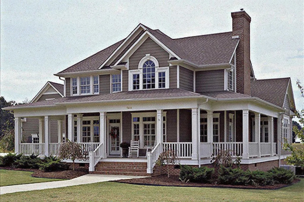 At only 2,100 square feet, this best-selling house plan seems to contain what many families need in a home plans. Two porches snugly hug the exterior of the home, giving ample sheltered outdoor space on hot days. Four French doors lead you into the bright family room, with its high ceiling and masonry fireplace. The deluxe owner's suite offers direct access to both porches. On the second floor, two additional bedrooms share a spacious Jack-and-Jill bath.