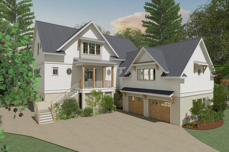Designed for both comfort and durability, this home is built with 2x6 exterior walls and a pier foundation, with optional walkout or piling foundations available. The drive-under detached garage (2,452 sq. ft.) accommodates 2-3 cars with a side entry, optimizing space and functionality. With a 12:12 primary roof pitch and stick-framed construction, the home achieves a timeless aesthetic with modern structural integrity. Whether you're entertaining indoors or enjoying the expansive porches, this home offers a perfect balance of style and practicality.
