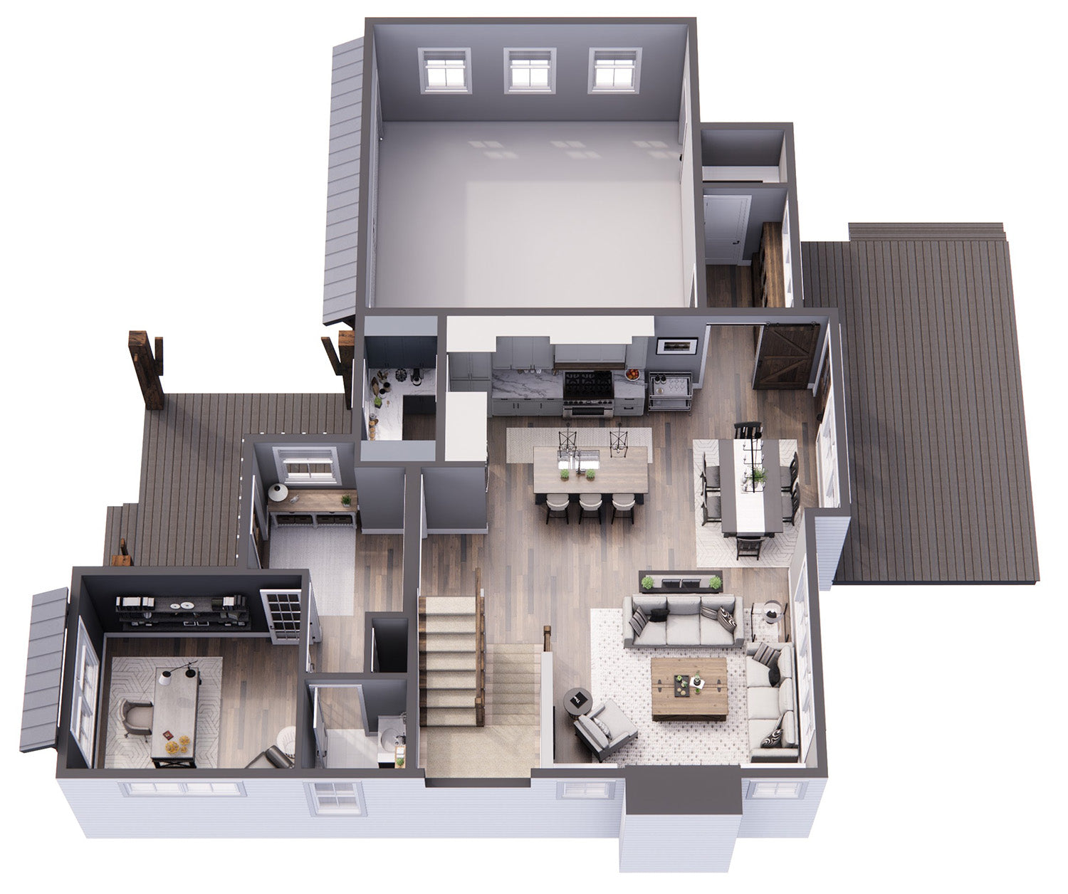 Walkout Basement - This foundation is typically suited for rear-sloping lots and provides storage or living areas. Walkout basements have doors that provide access to the outside.