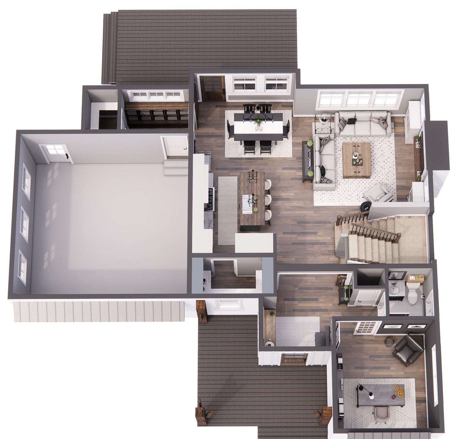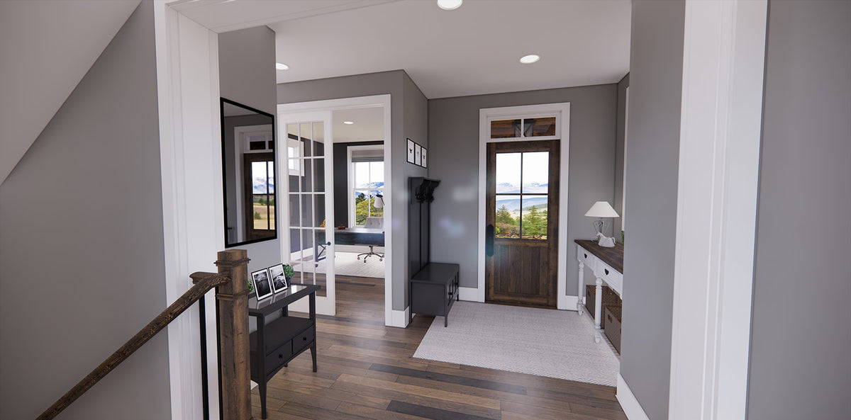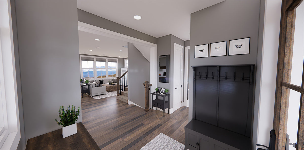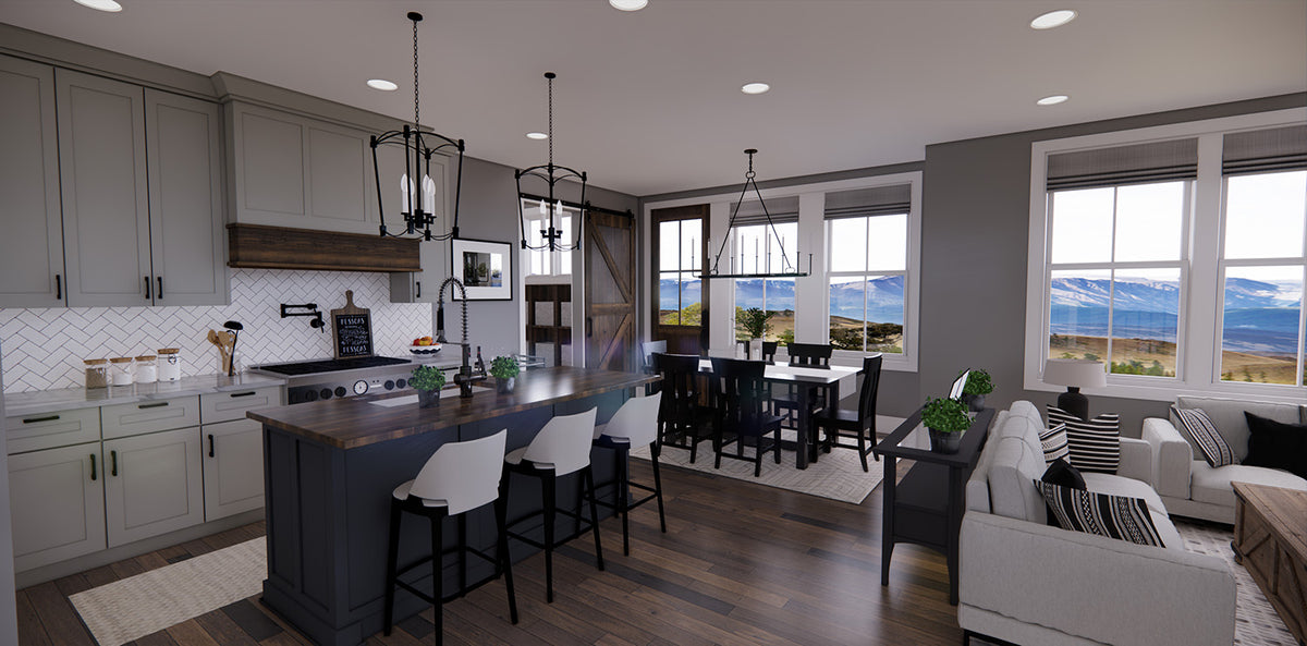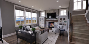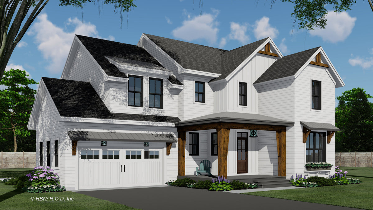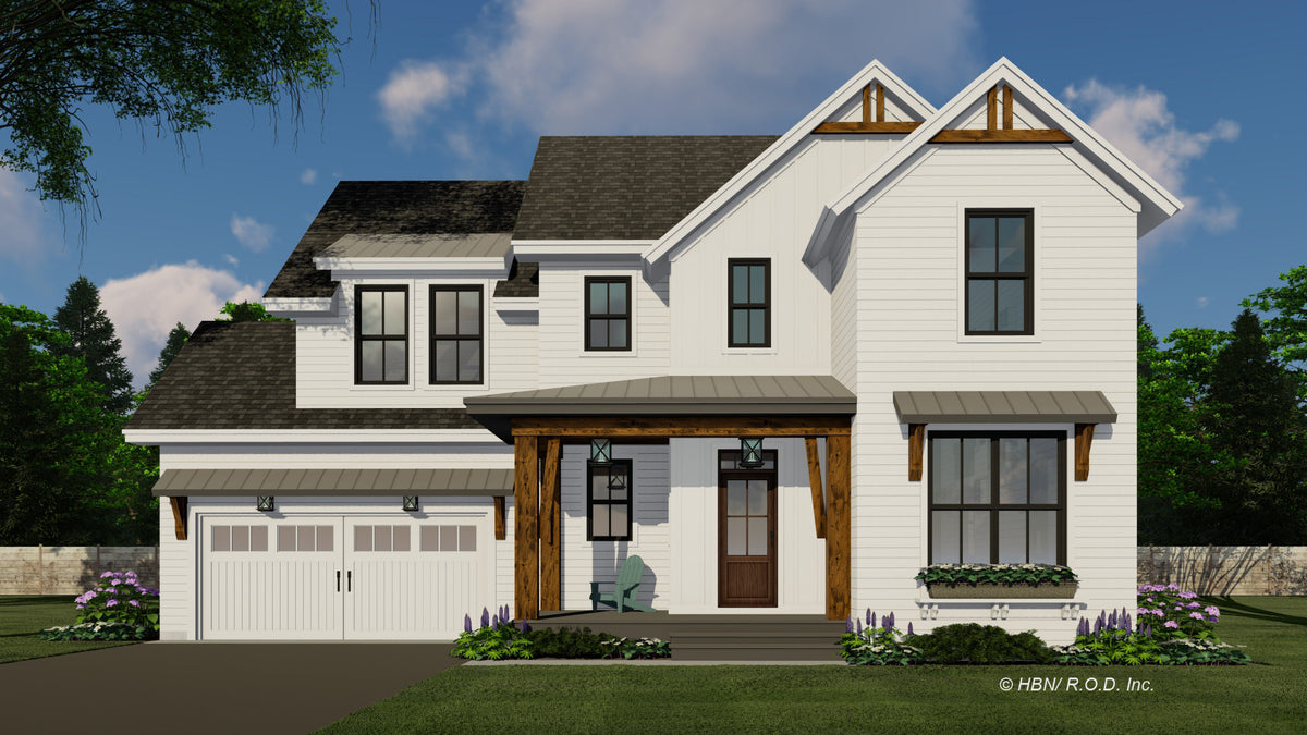 This beautifully designed 2-story 2,317 sq ft Farmhouse blends classic curb appeal with a smart, family-friendly layout. The open-concept main floor creates a seamless flow between the great room, dining area, and kitchen—perfect for entertaining or everyday life. A cozy fireplace invites relaxation, while the large kitchen island with seating for three encourages conversation. Ample cabinetry and a walk-in pantry offer all the storage space you need. Just off the main living area is a convenient mudroom with garage access and a bright corner office ideal for work or study.