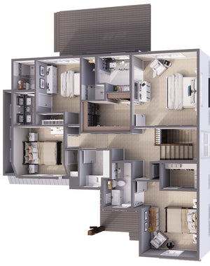 Five printed sets of working drawings shipped to you, plus a digital version in PDF format. This option comes with a license to build ONE home and includes a copyright release for printing unlimited sets of plans and making modifications.