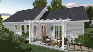 This 848 sq ft small house offers a perfect blend of efficiency and comfort, making it an ideal choice for those seeking a cozy yet functional home. The open floor plan creates a spacious feel, featuring a keeping/family room, a well-designed kitchen with an island, and a first-floor master suite. A first-floor laundry adds convenience, while the covered front porch (287 sq ft) and patio provide inviting outdoor spaces for relaxation.