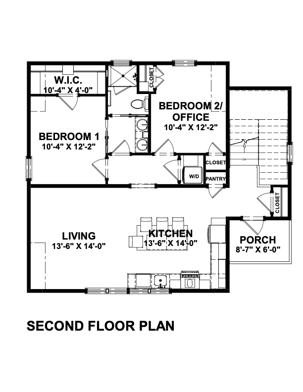 A standout feature of this design is the ADU/garage apartment space, providing additional living or rental opportunities. With a covered front porch and a deck, you can enjoy outdoor living, while the 2x6 wall framing and 10:12 roof pitch ensure durability and style. The slab foundation keeps maintenance minimal, while the spacious garage and practical floor plan provide all the conveniences for modern living in a charming cottage-style home.